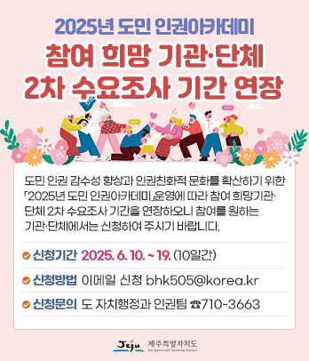 - 2025년 도민 인권아카데미 참여 희망 기관·단체 2차 수요조사 기간 연장