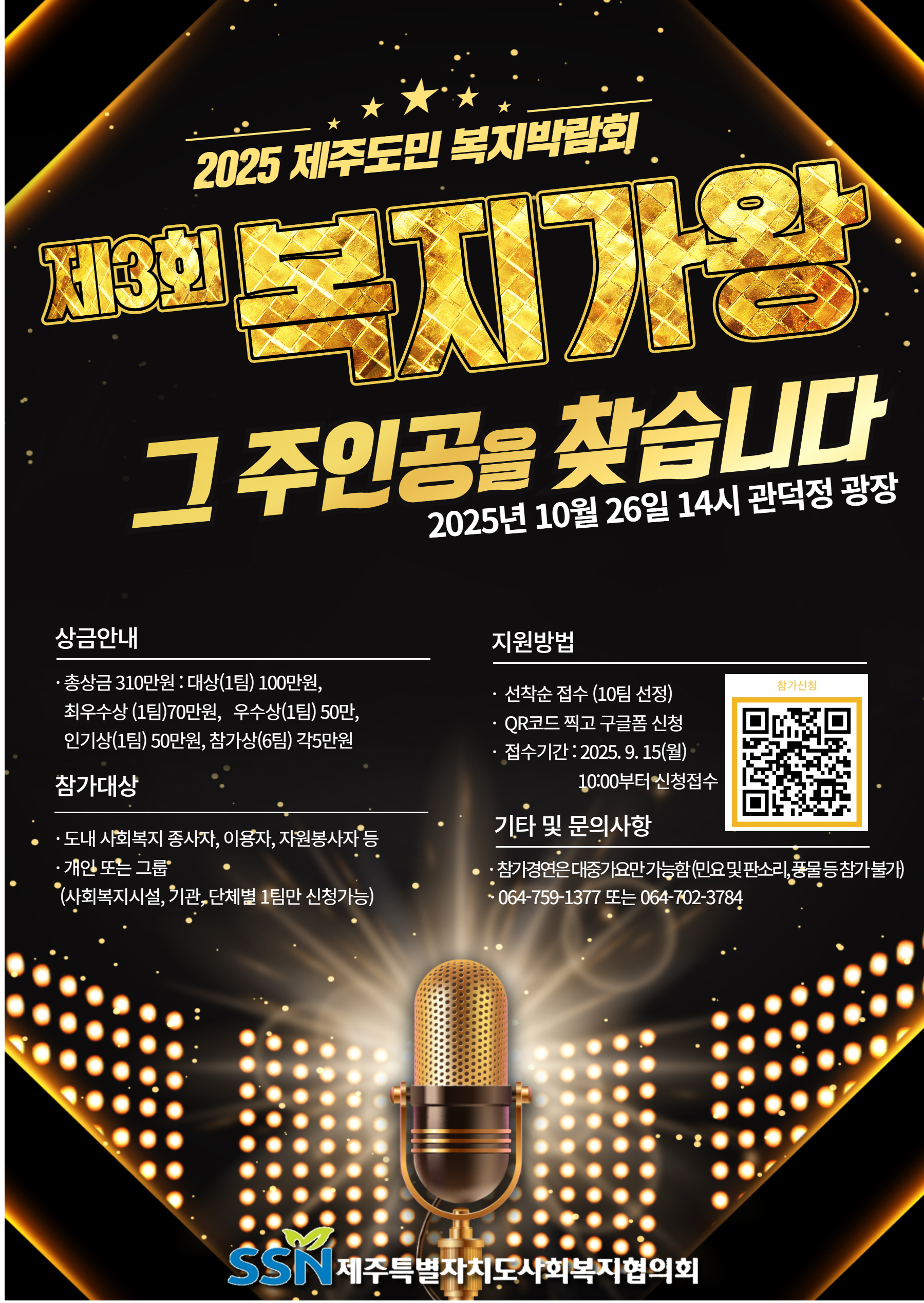 2025 제주 사회복지인 가요 경연대회 '제3회 복지가왕' 참가 신청 안내
