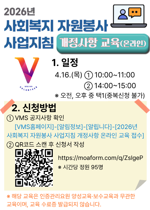 ○ 교육명 : 2026년 사회복지 자원봉사 사업지침 개정사항 교육(온라인)