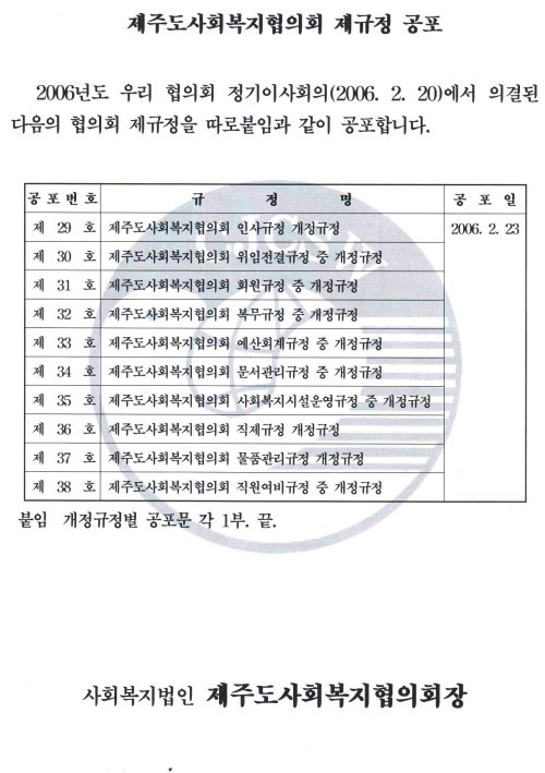 제주도사회복지협의회 제규정 공포