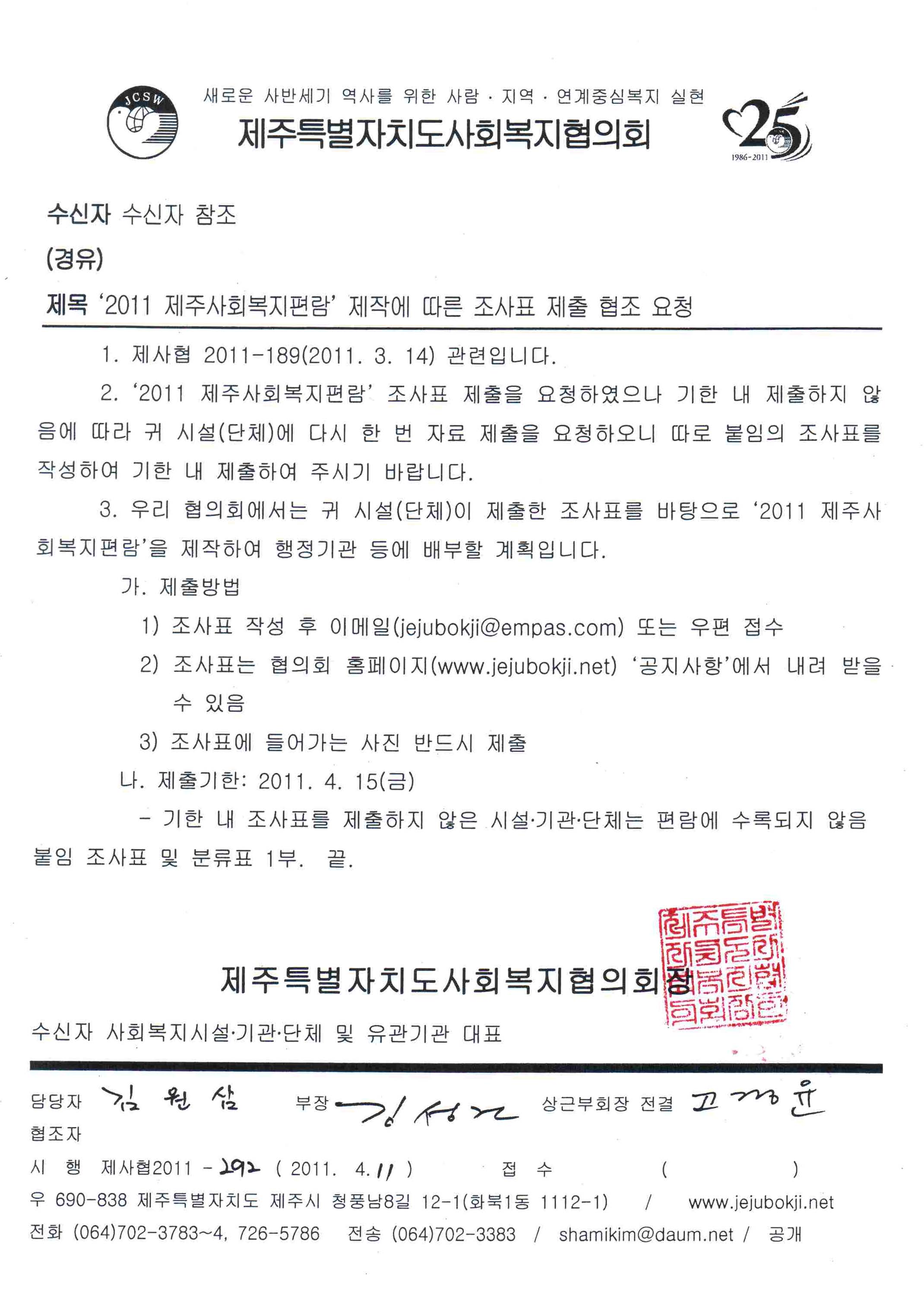 2011 제주사회복지편람 자료 요청