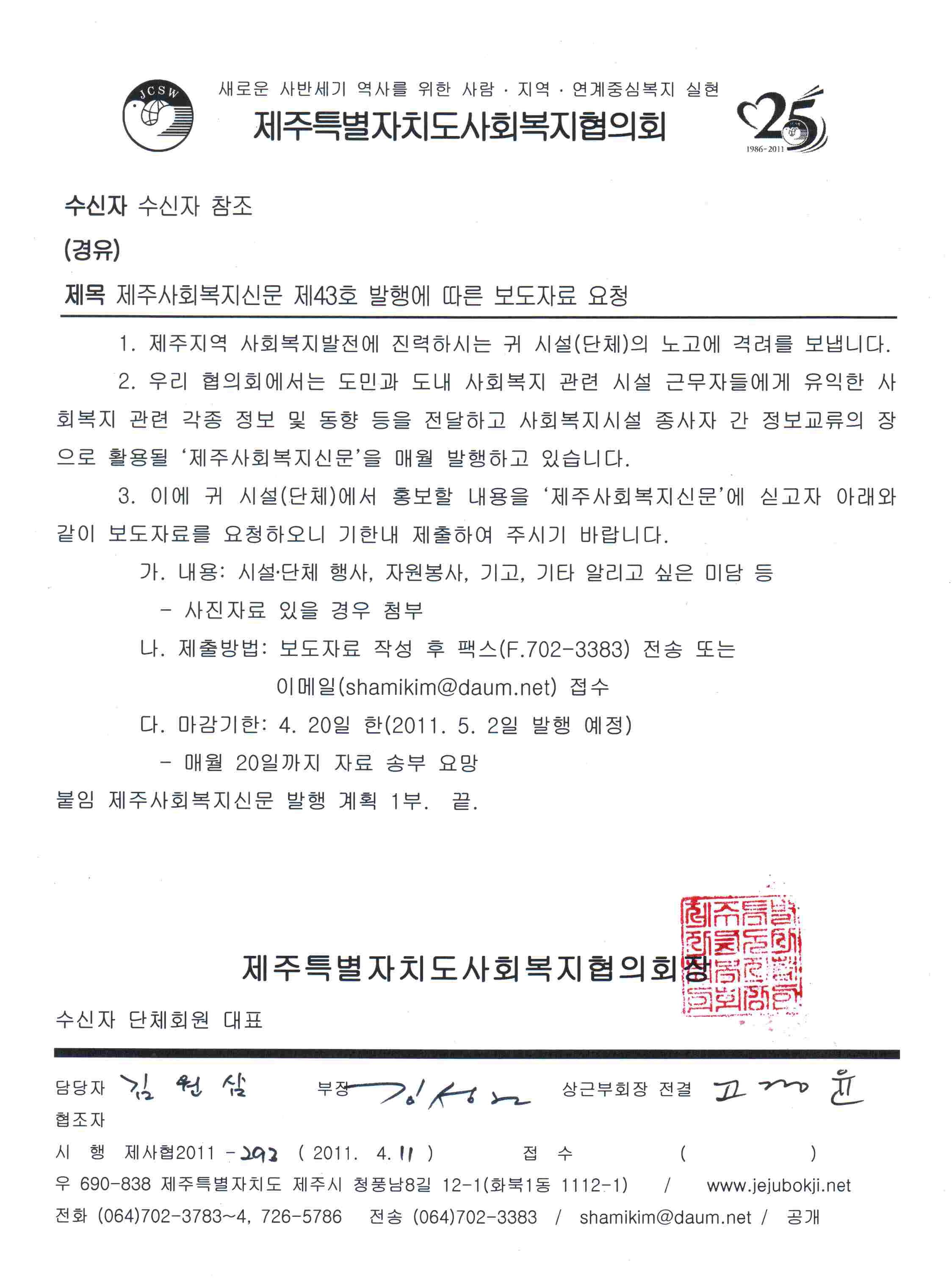 사회복지신문 43호 보도자료 요청