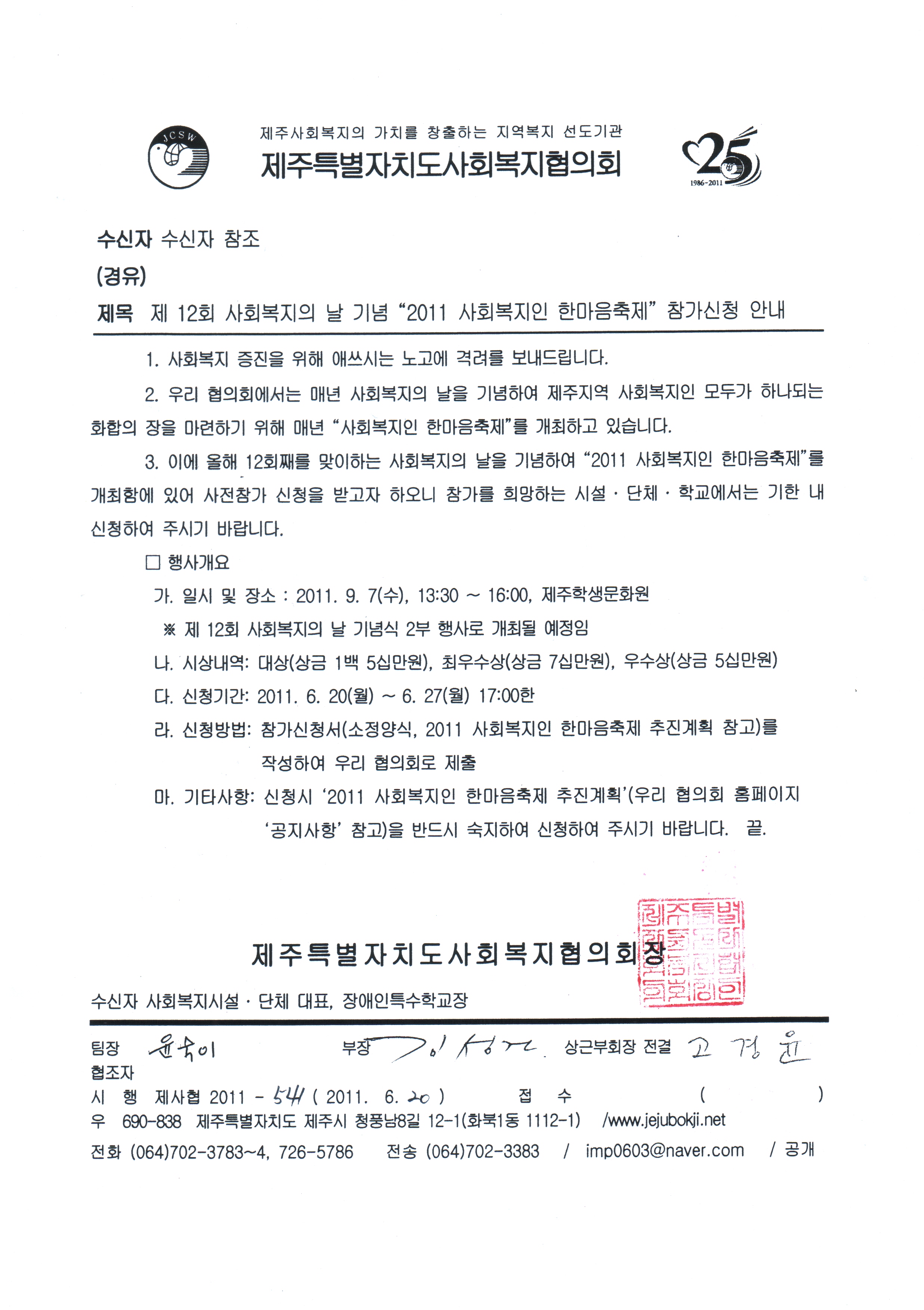 제12회 사회복지의날 기념"2011 사회복지인 한마음축제" 참가신청 안내