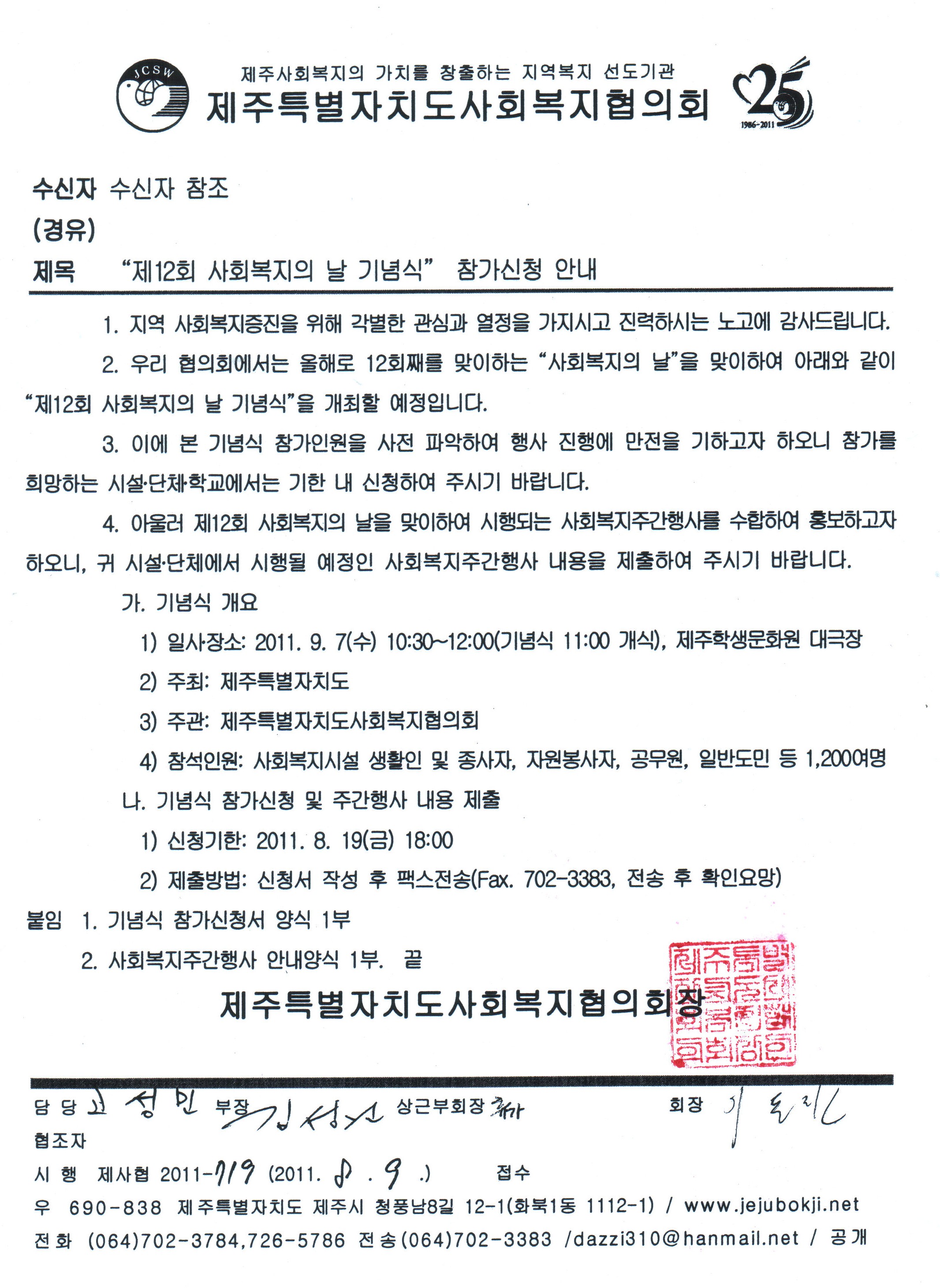 "제12회 사회복지의 날 기념식" 참가신청 안내