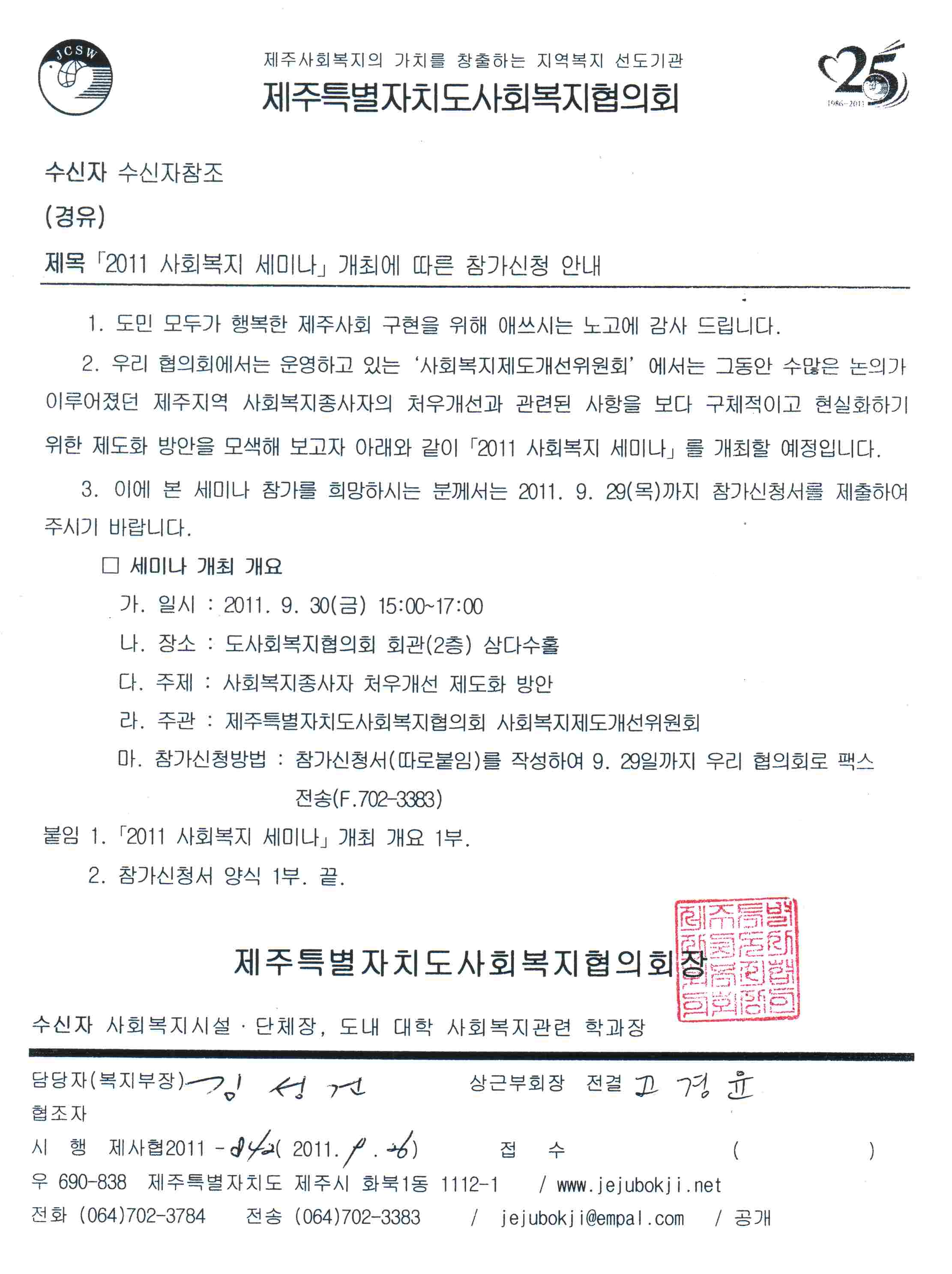 「2011 사회복지 세미나 」참가신청 안내