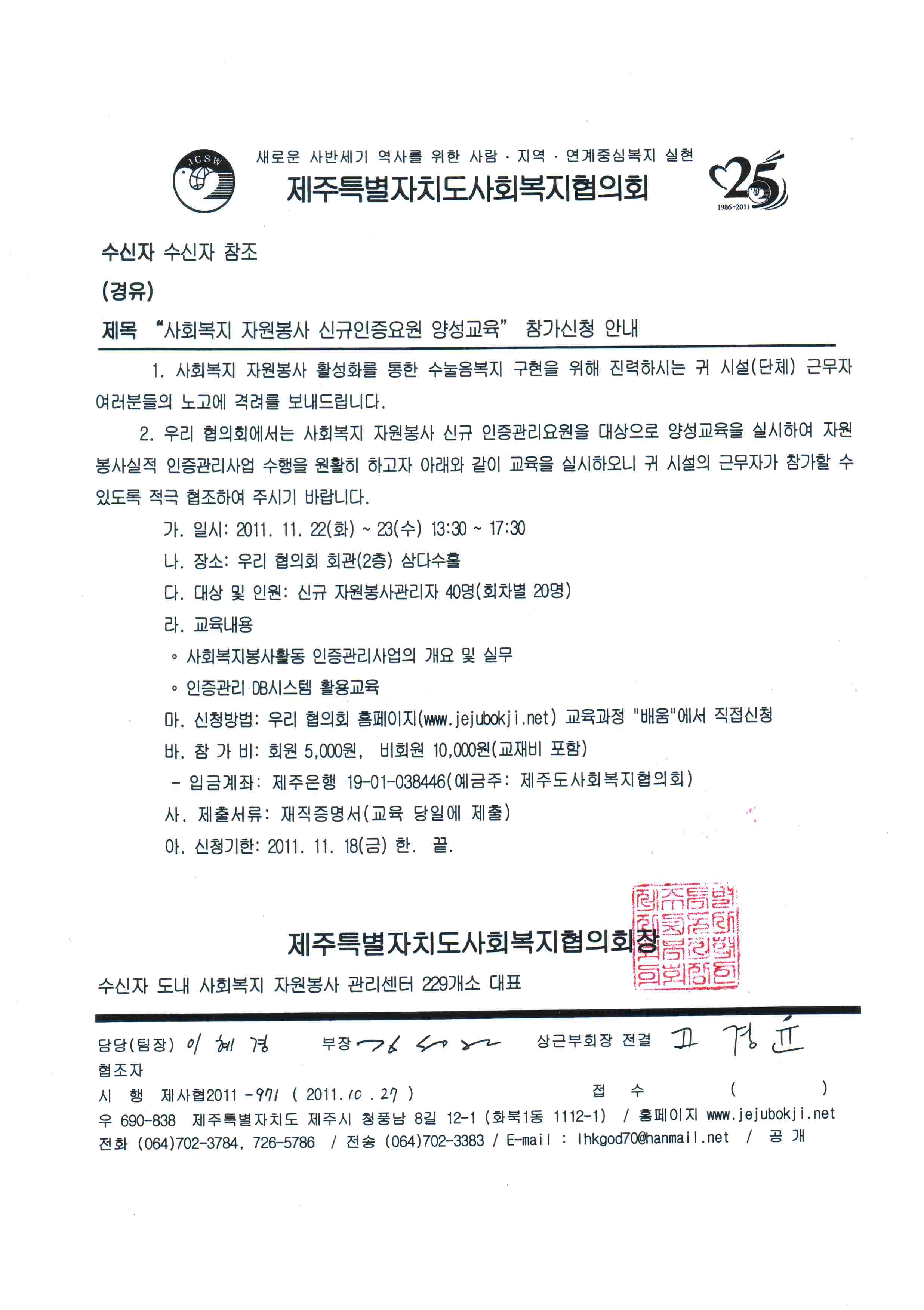 "사회복지 자원봉사 신규인증요원 양성교육" 참가신청 안내