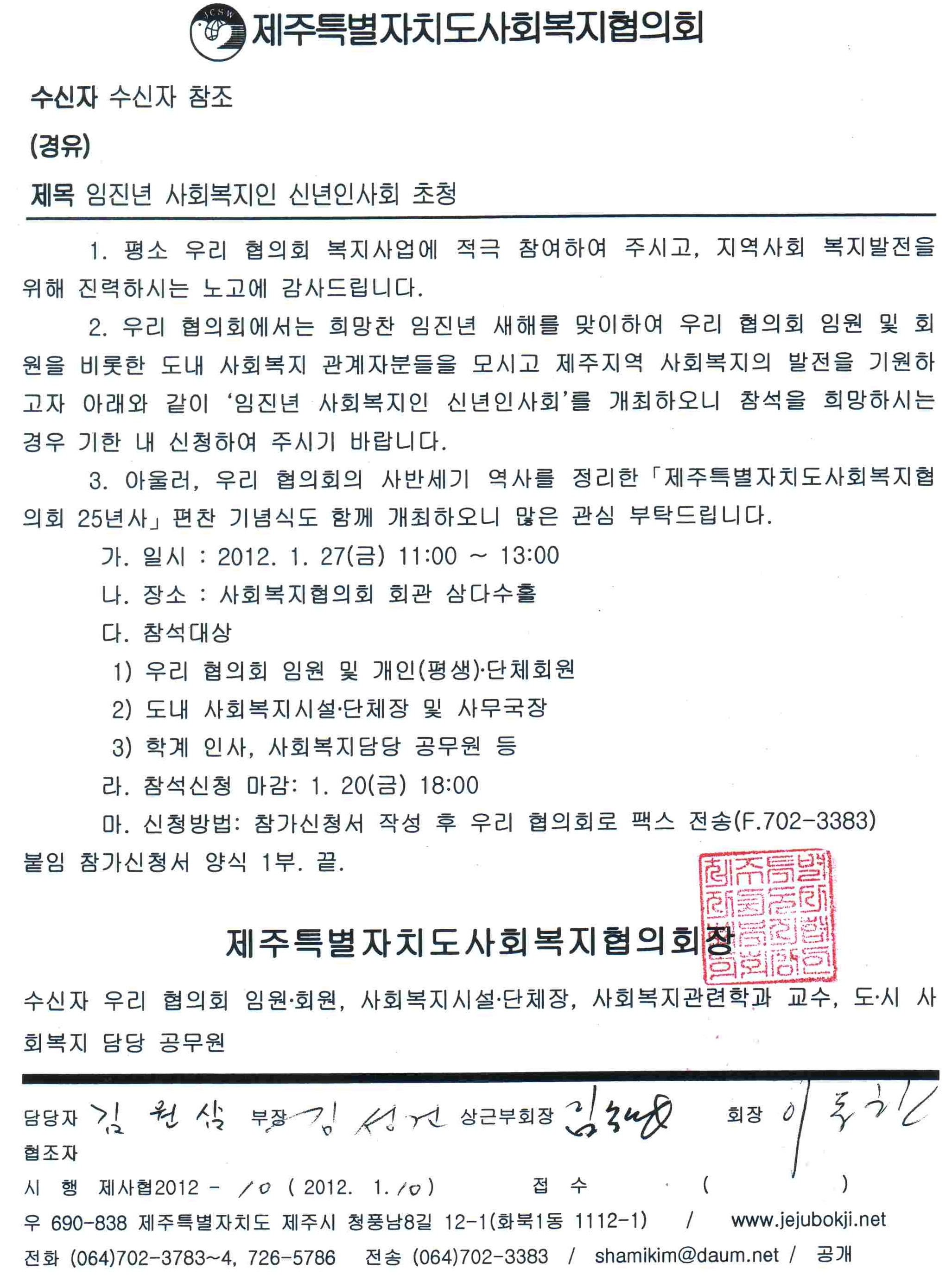 <임진년 사회복지인 신년인사회> 참가신청 안내
