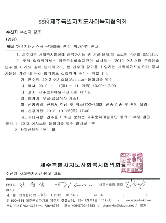 '2012 어시스터 문화예술 연수' 참가신청 안내