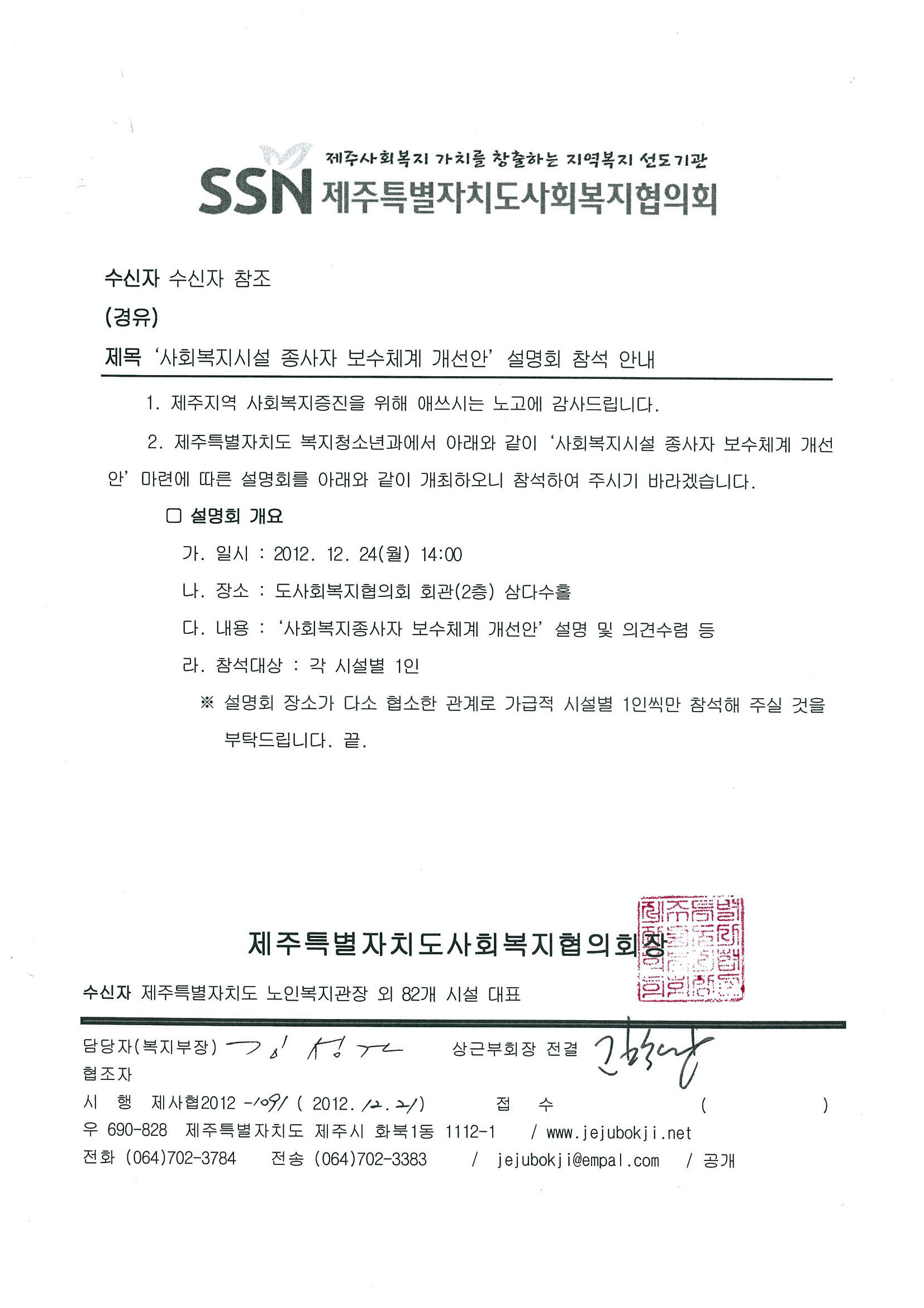 '사회복지종사자 보수체계 개선 설명회'참석안내