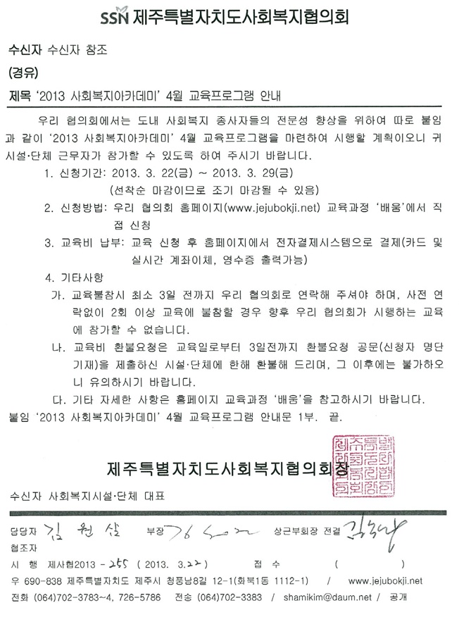 2013년 4월 사회복지아카데미 교육안내