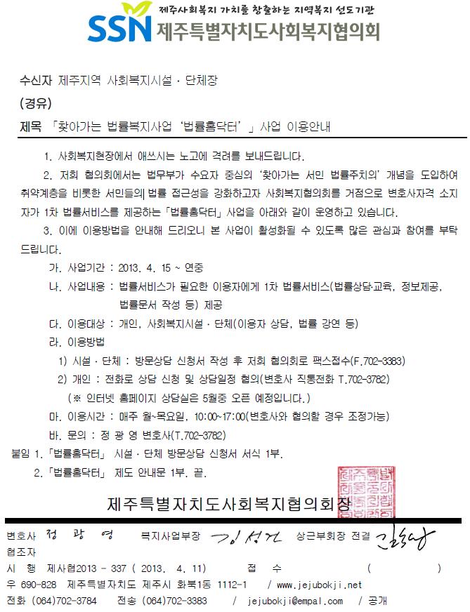 「찾아가는 법률복지사업‘법률홈닥터’」사업 이용안내