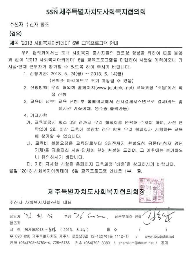 2013년 6월 사회복지아카데미 교육안내
