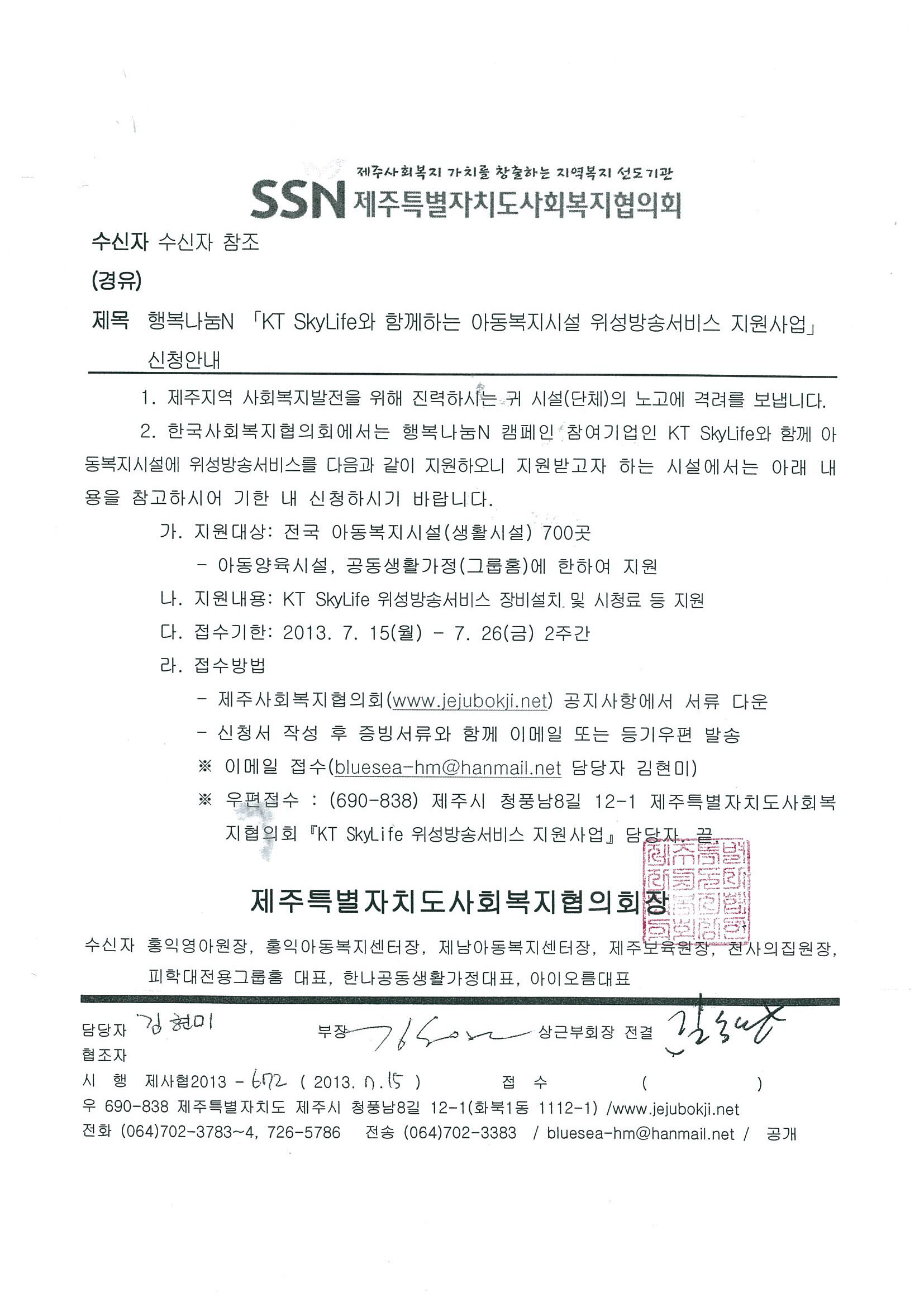 행복나눔N KT 스카이라이프와 함께하는 아동복지시설 위성방송서비스 지원사업 신청안내