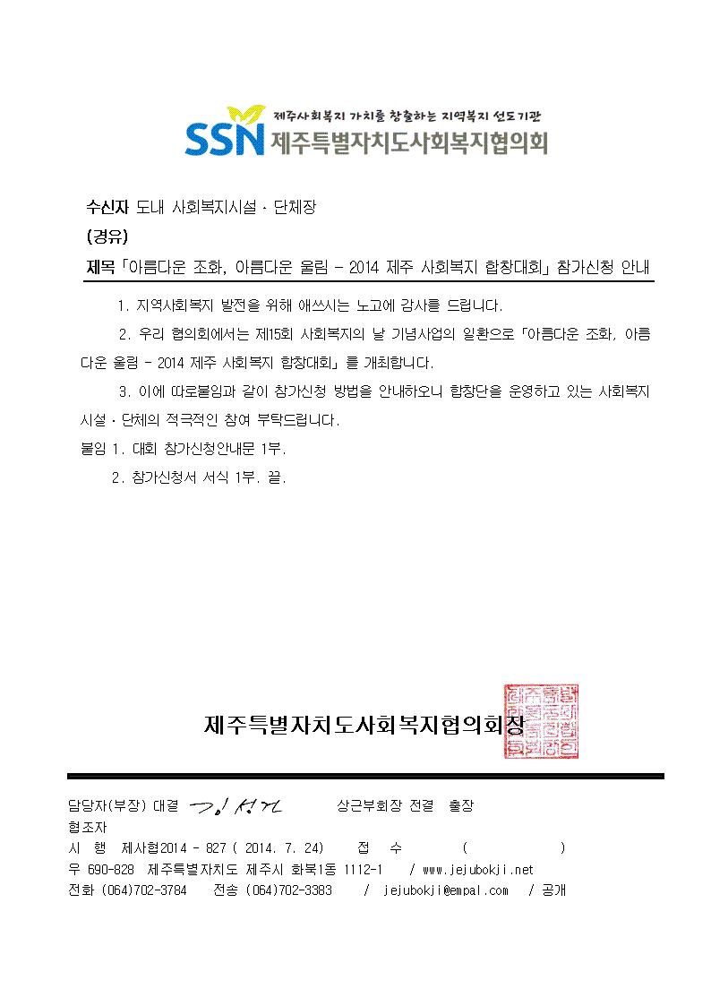 <2014 제주 사회복지 합창대회> 참가신청 안내