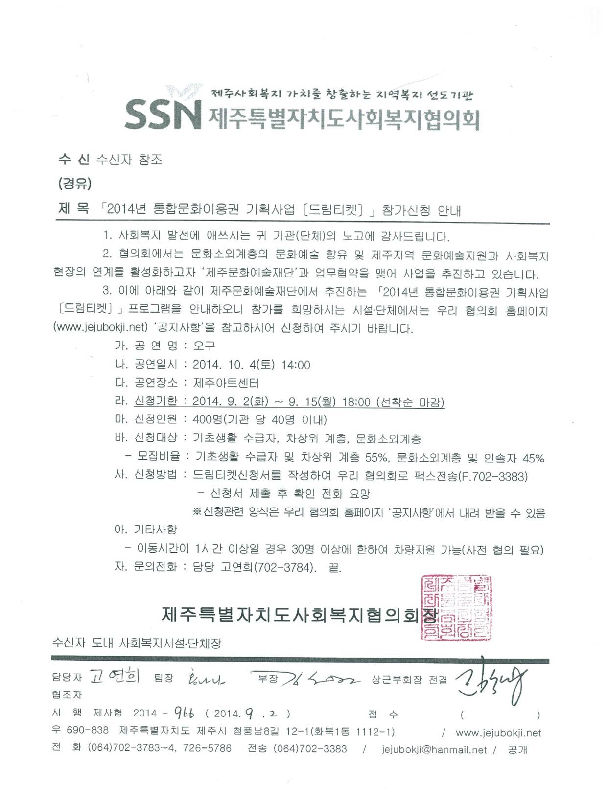 통합문화이용권 기획사업[드림티켓] '오구' 신청안내