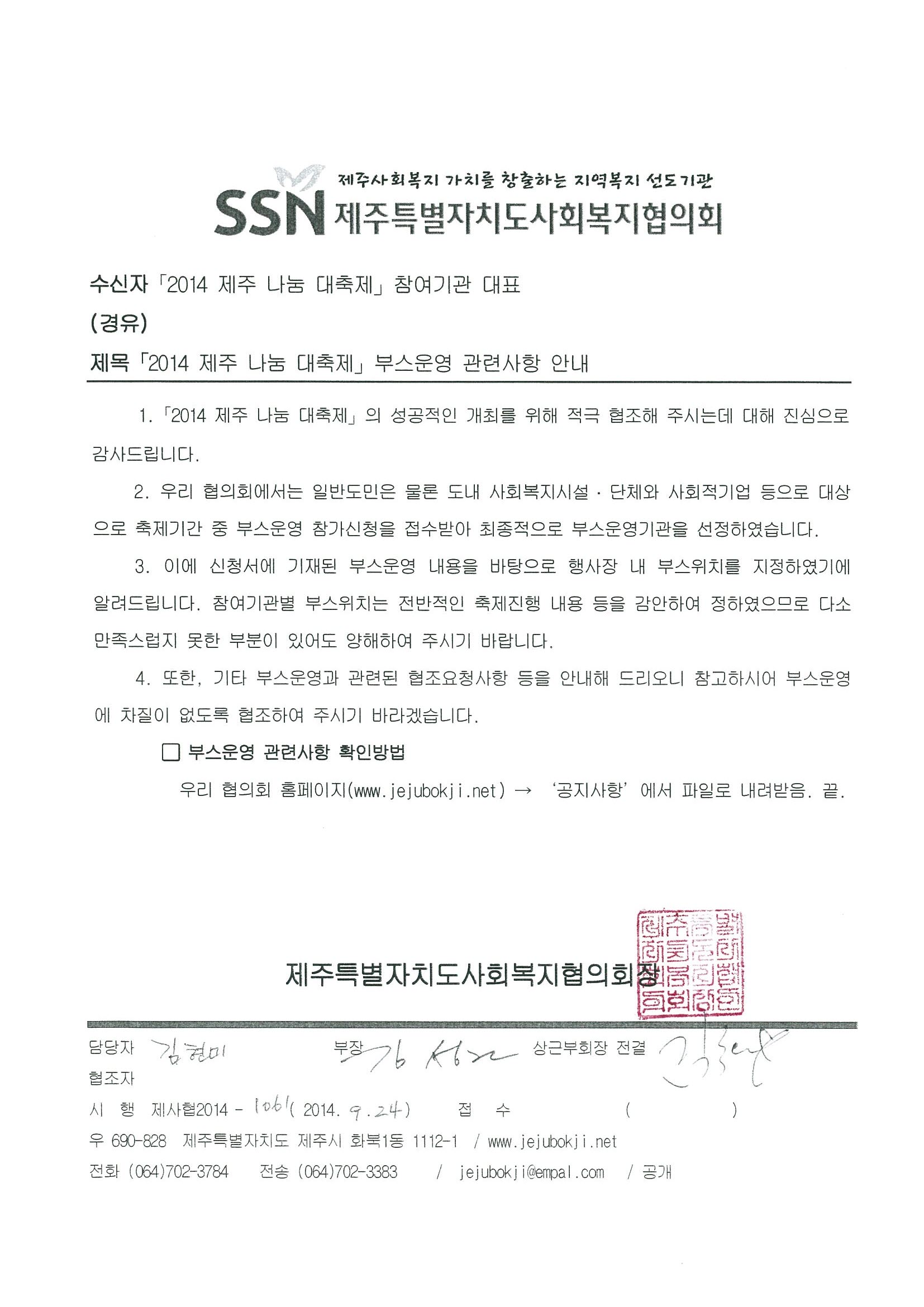 2014 제주 나눔 대축제 부스운영 관련사항 안내