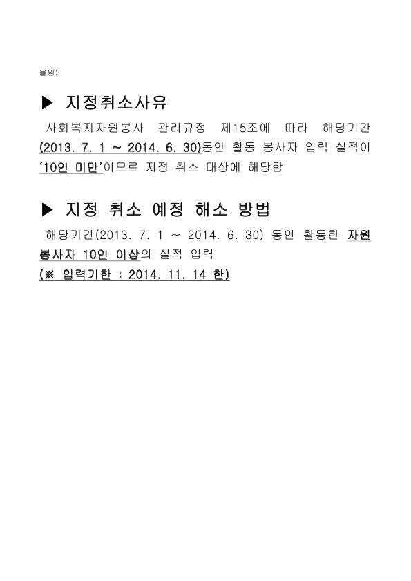 2014 사회복지자원봉사관리센터 지정취소 예정 대상 통보