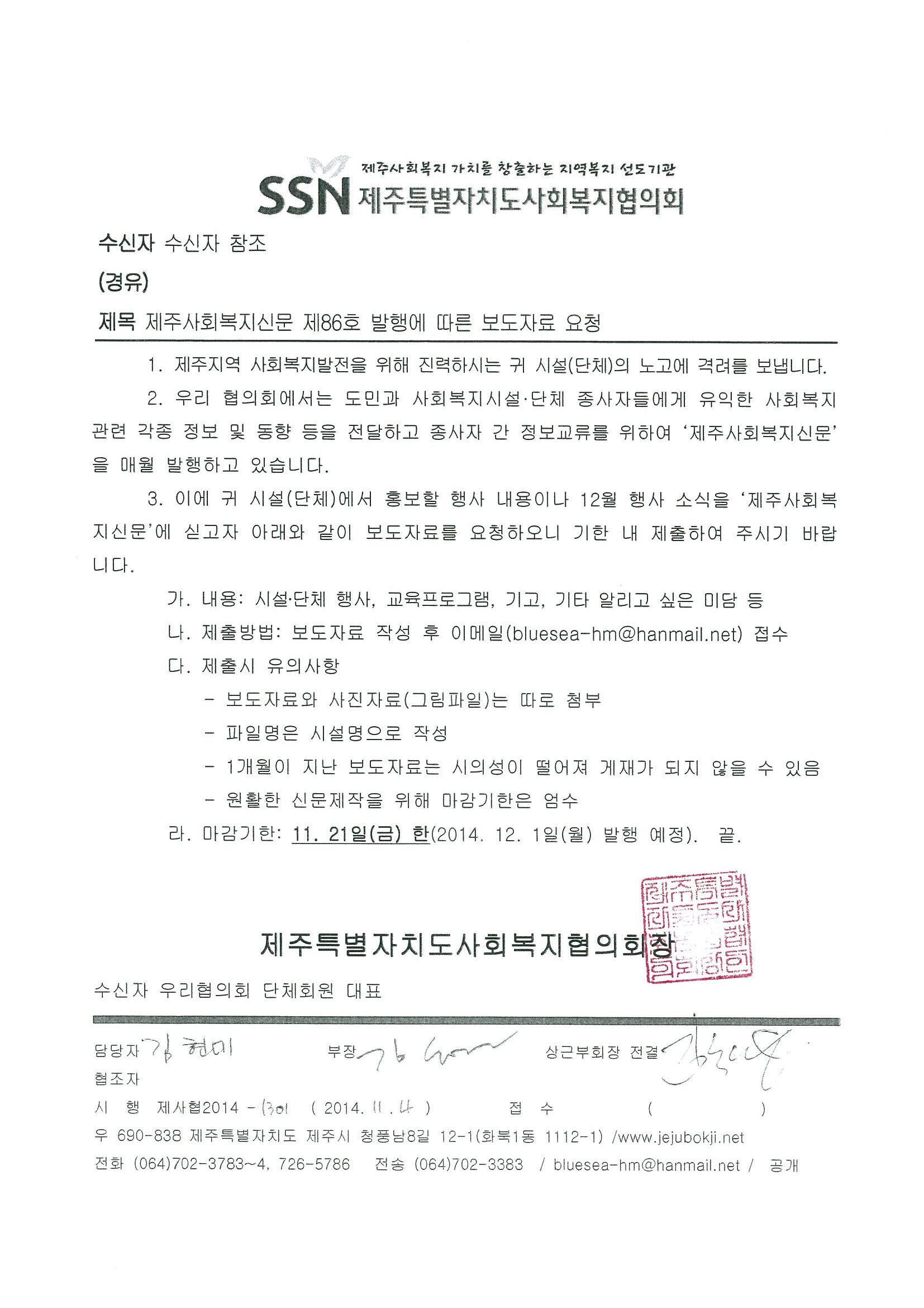 사회복지신문 86호 발행에 따른 보도자료 요청