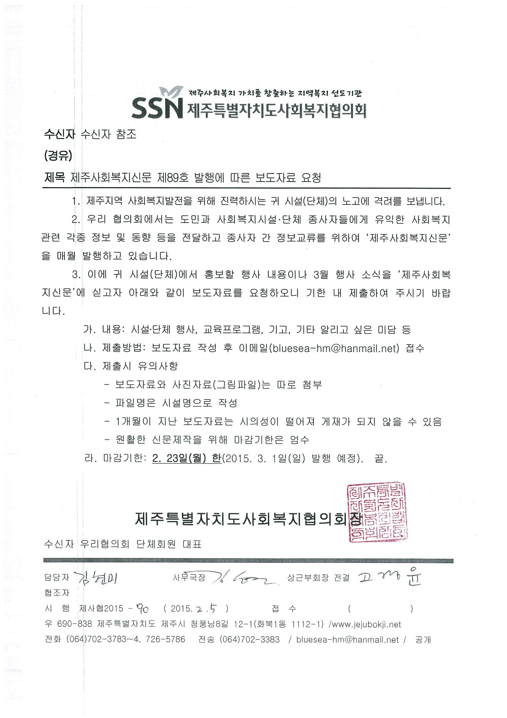 사회복지신문 89호 보도자료 요청공문