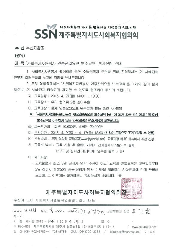 2015년도 사회복지자원봉사 인증관리요원 보수교육(상반기) 참가신청 안내