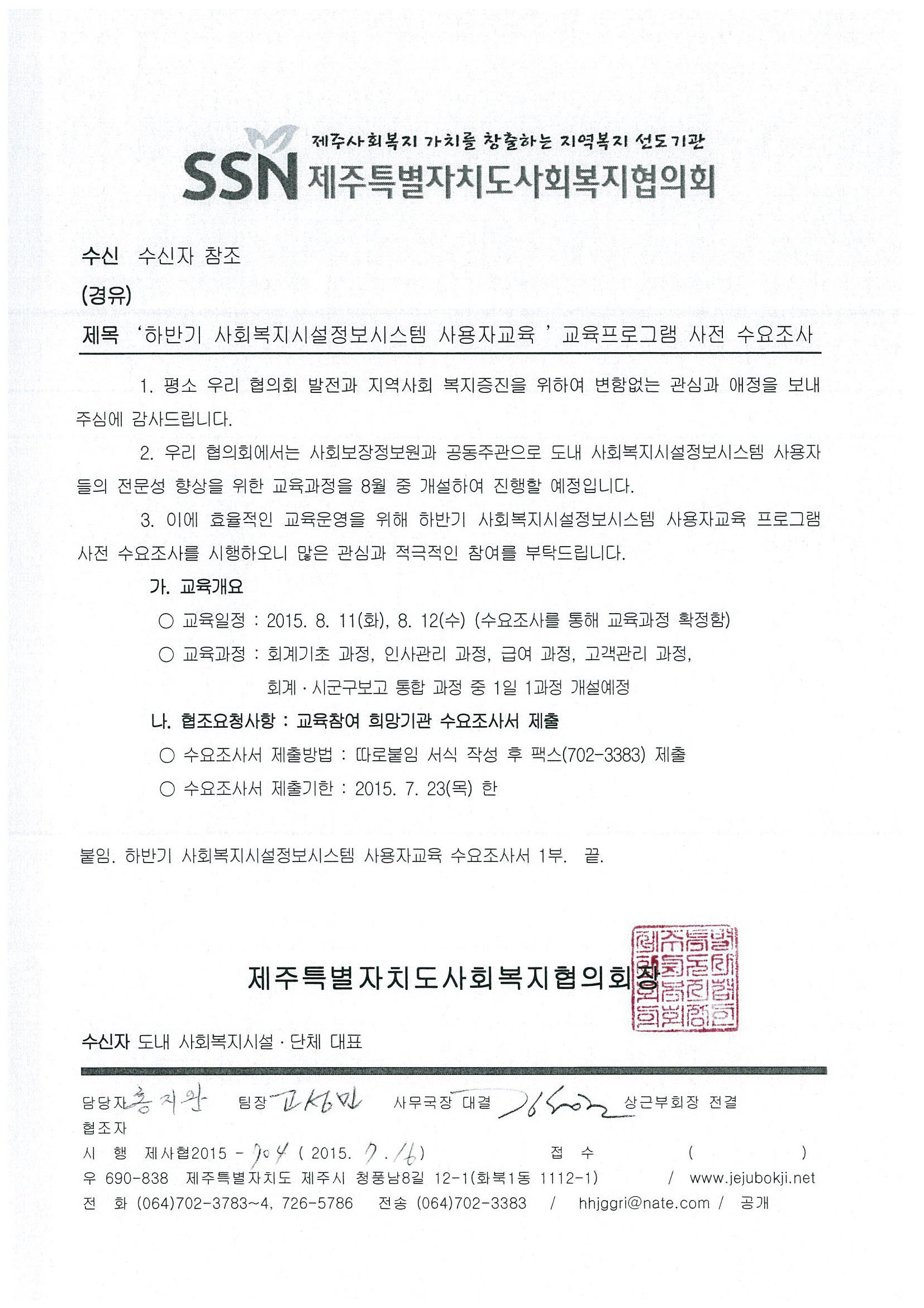 '하반기 사회복지시설정보시스템 사용자교육' 교육프로그램 사전 수요조사