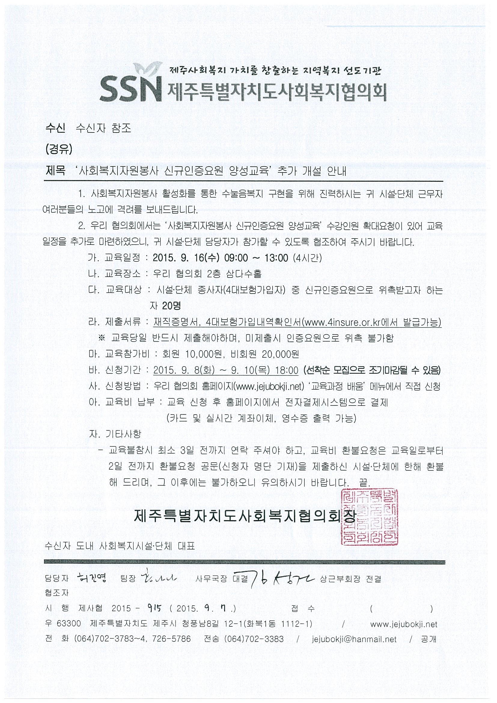 사회복지자원봉사 신규인증요원 양성교육 추가 개설 안내