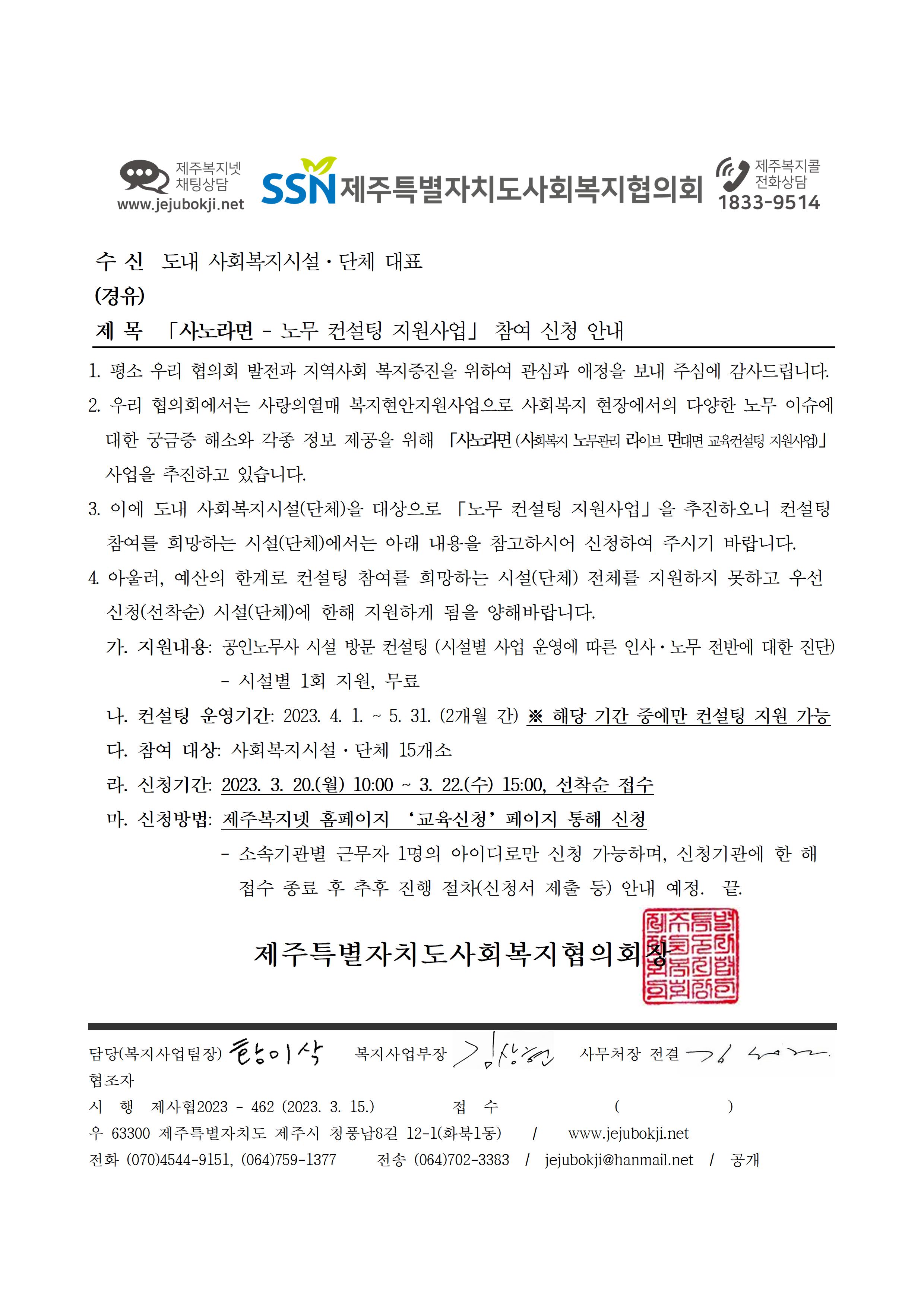 「사노라면 - 노무 컨설팅 지원사업」 참여 신청 안내