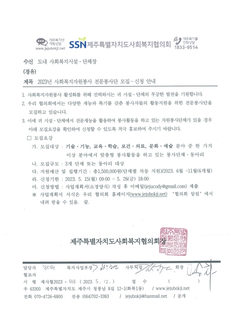 2023년 사회복지자원봉사 전문봉사단 모집·신청 안내