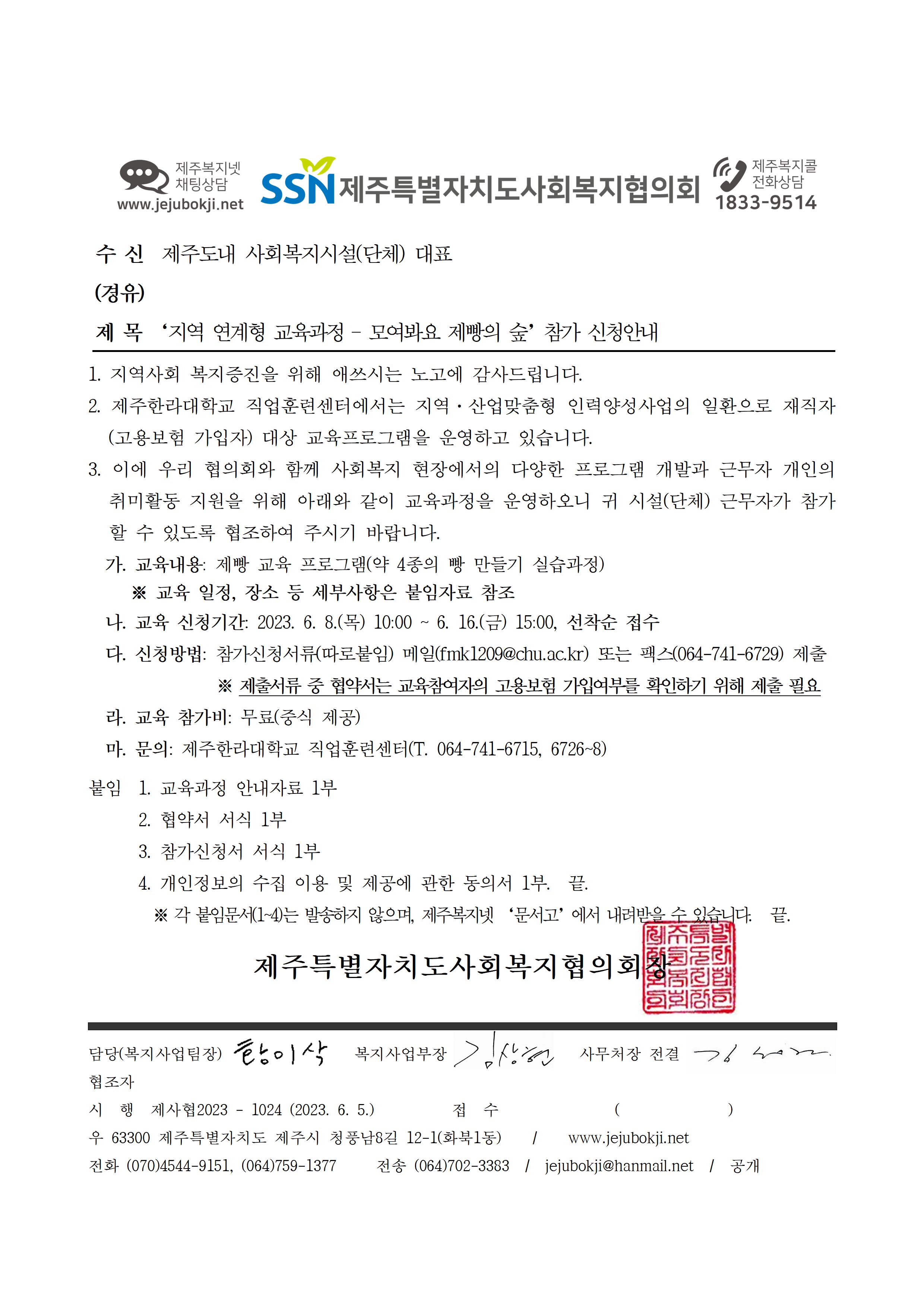 ‘지역 연계형 교육과정 – 모여봐요 제빵의 숲’ 참가 신청안내