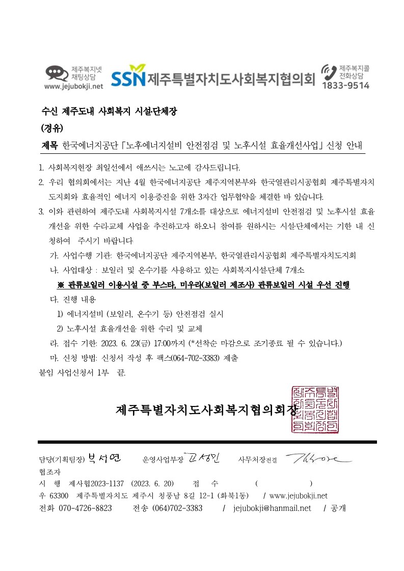 한국에너지공단「노후에너지설비 안전점검 및 노후시설 효율개선사업」신청 안내