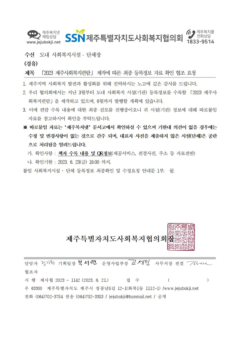 「2023 제주사회복지편람」 제작에 따른 최종 등록정보 자료 확인 협조 요청.pdf