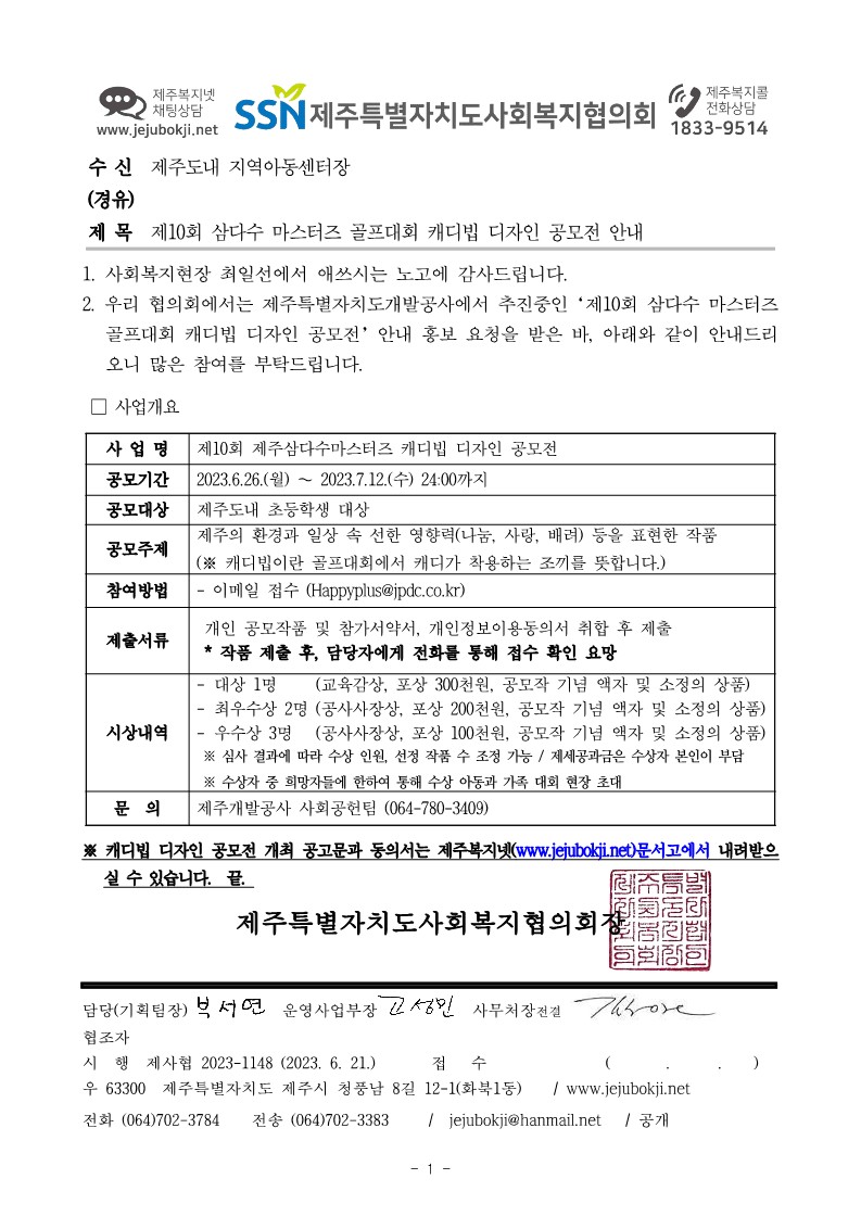 제10회 삼다수 마스터즈 골프대회 캐디빕 디자인 공모전 안내