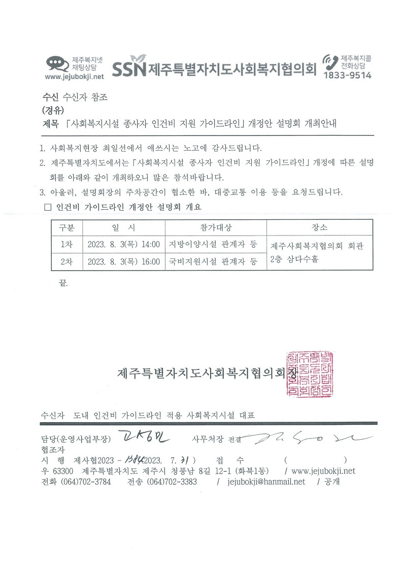 「사회복지시설 종사자 인건비 지원 가이드라인」 개정안 설명회 개최안내