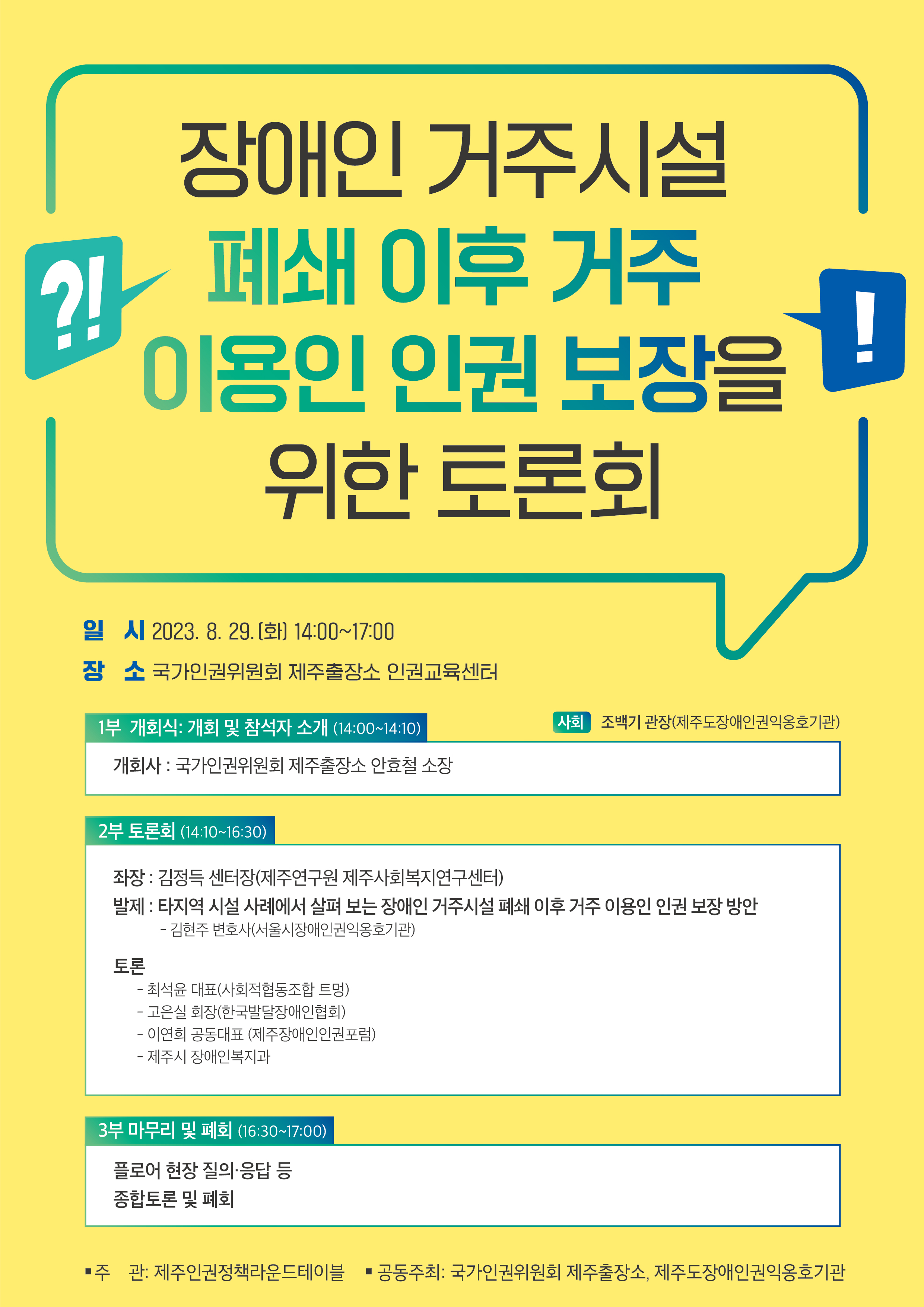 「장애인 거주시설 폐쇄 이후 거주이용인 인권 보장을 위한 토론회」 개최 안내