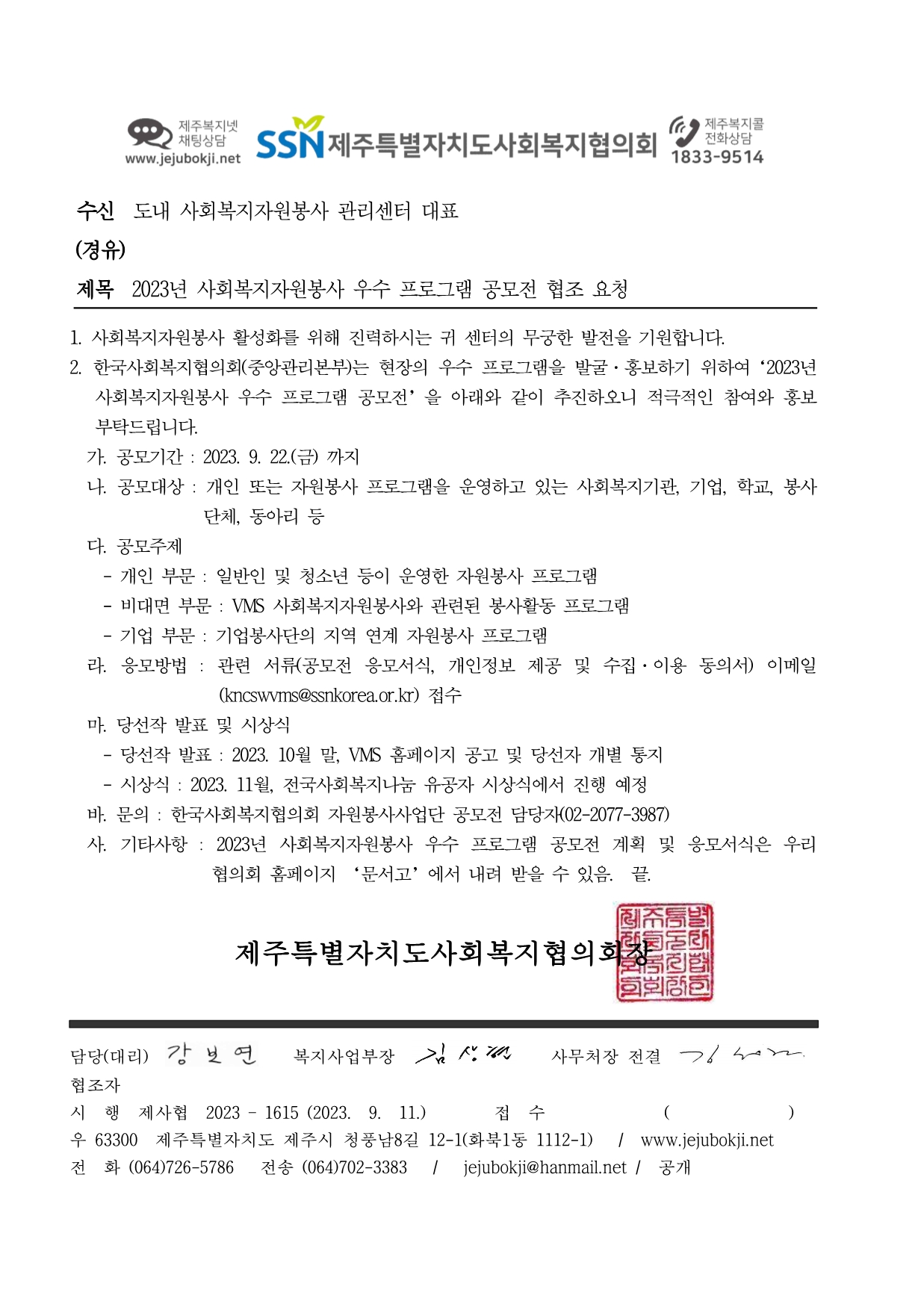 2023년 사회복지자원봉사 우수 프로그램 공모전 협조 요청