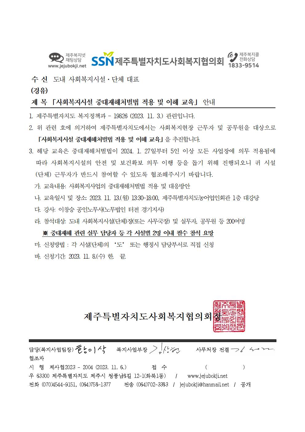 「사회복지시설 중대재해처벌법 적용 및 이해 교육」 안내