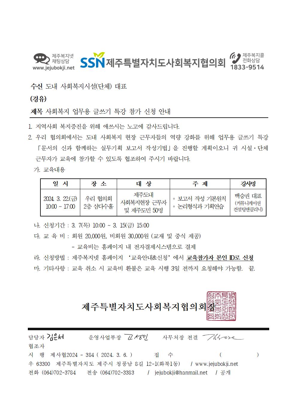 사회복지 업무용 글쓰기 특강 참가신청 안내