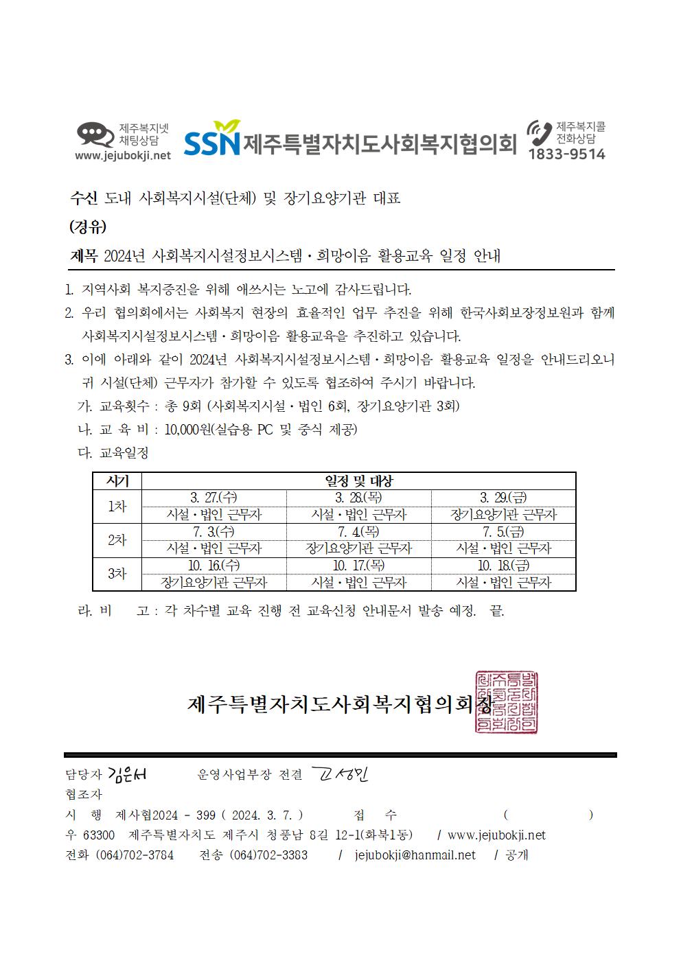 2024년 사회복지시설정보시스템 · 희망이음 활용교육 일정 안내
