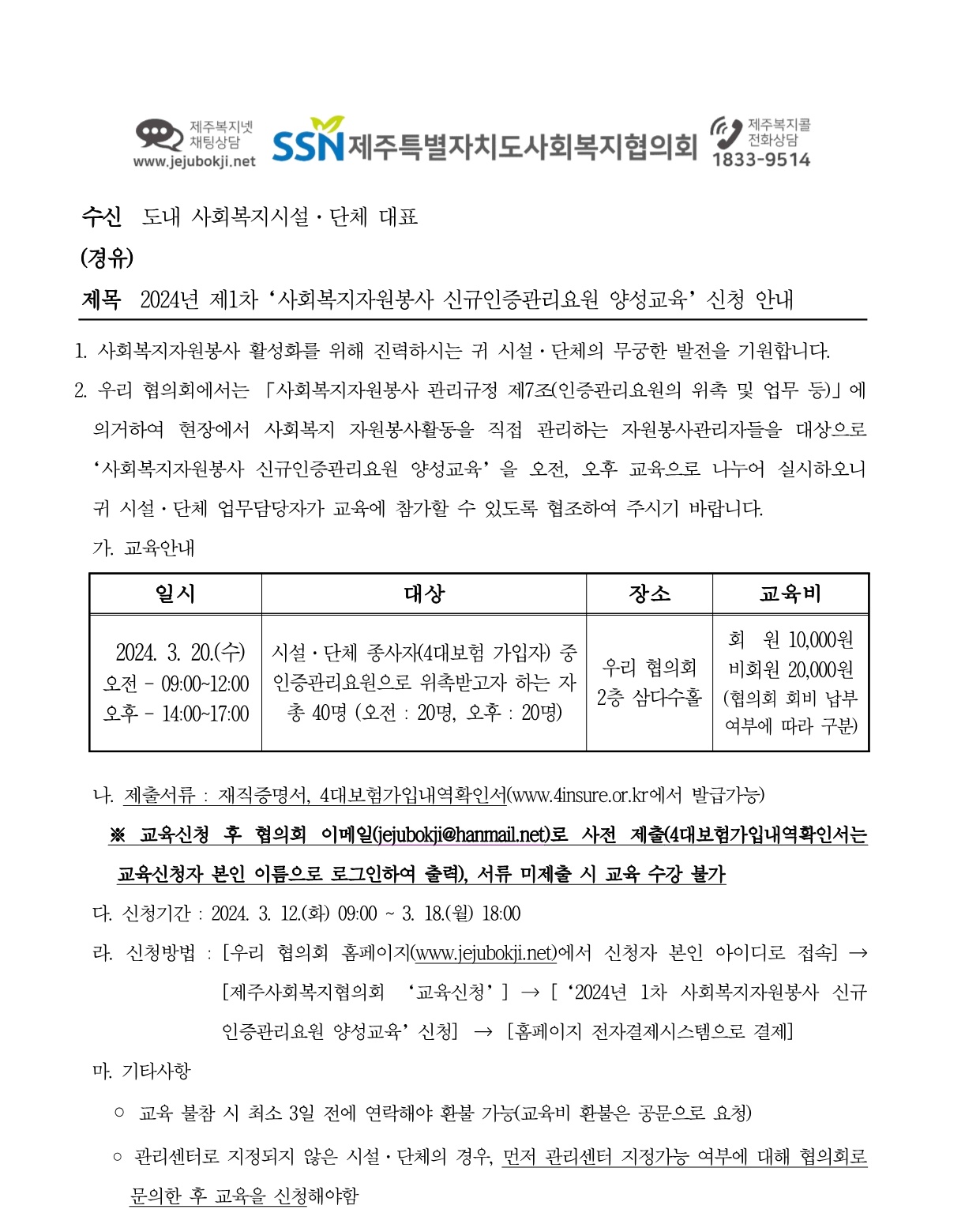 2024년 제1차 신규인증관리요원 양성교육 신청 안내