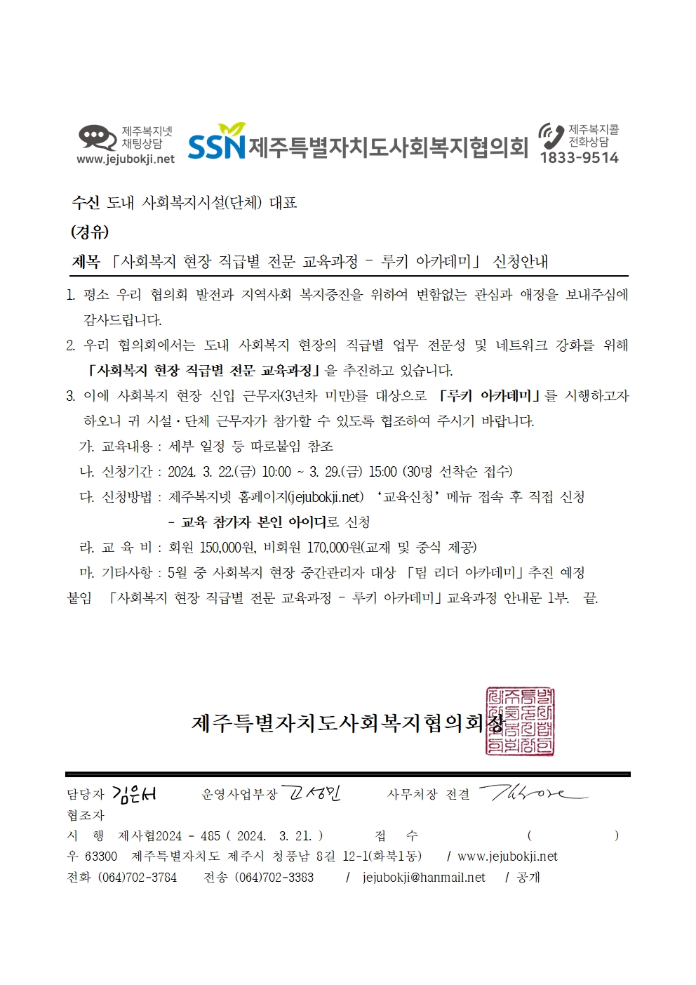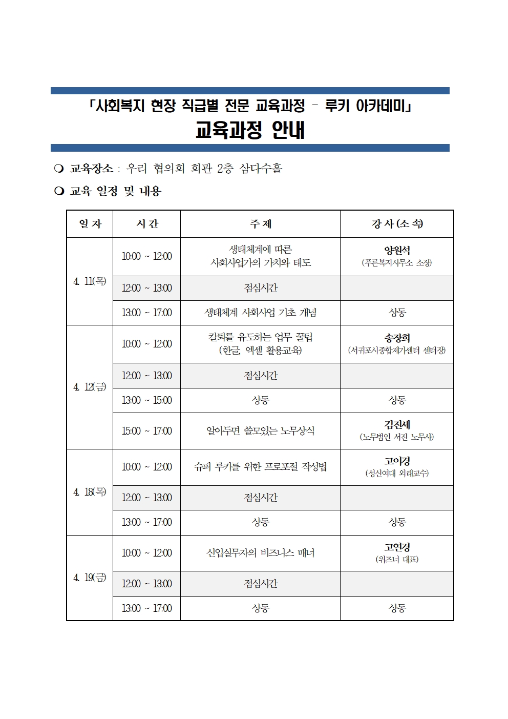 「사회복지 현장 직급별 전문 교육과정 - 루키 아카데미」 신청안내