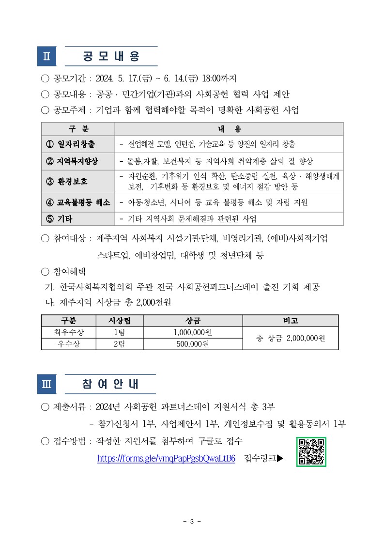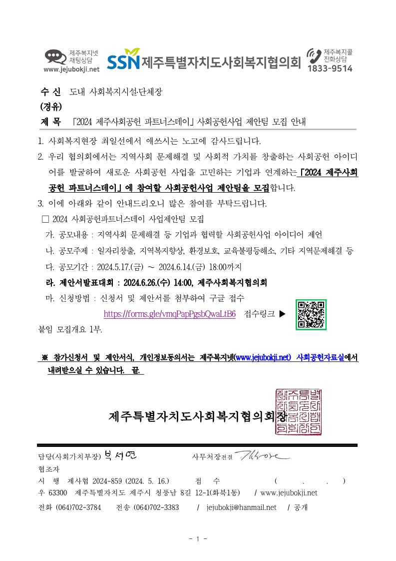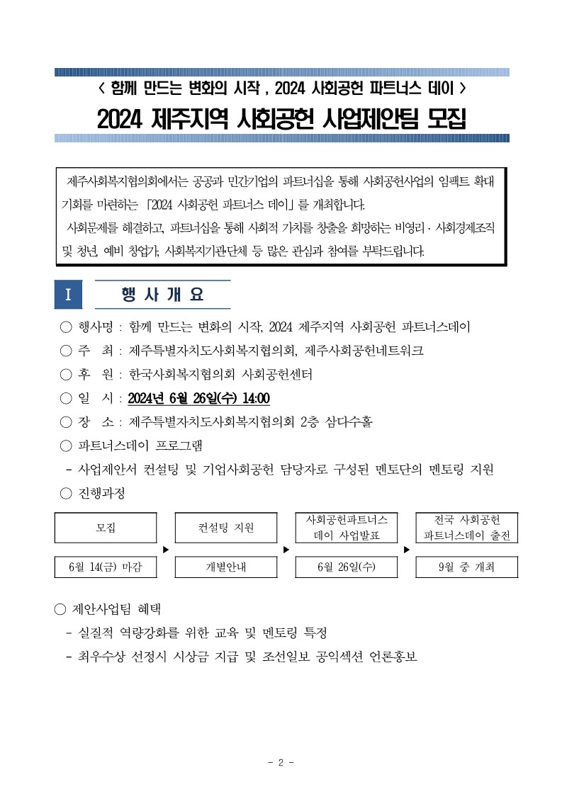 2024 제주사회공헌파트너스데이 사회공헌사업제안팀 모집안내