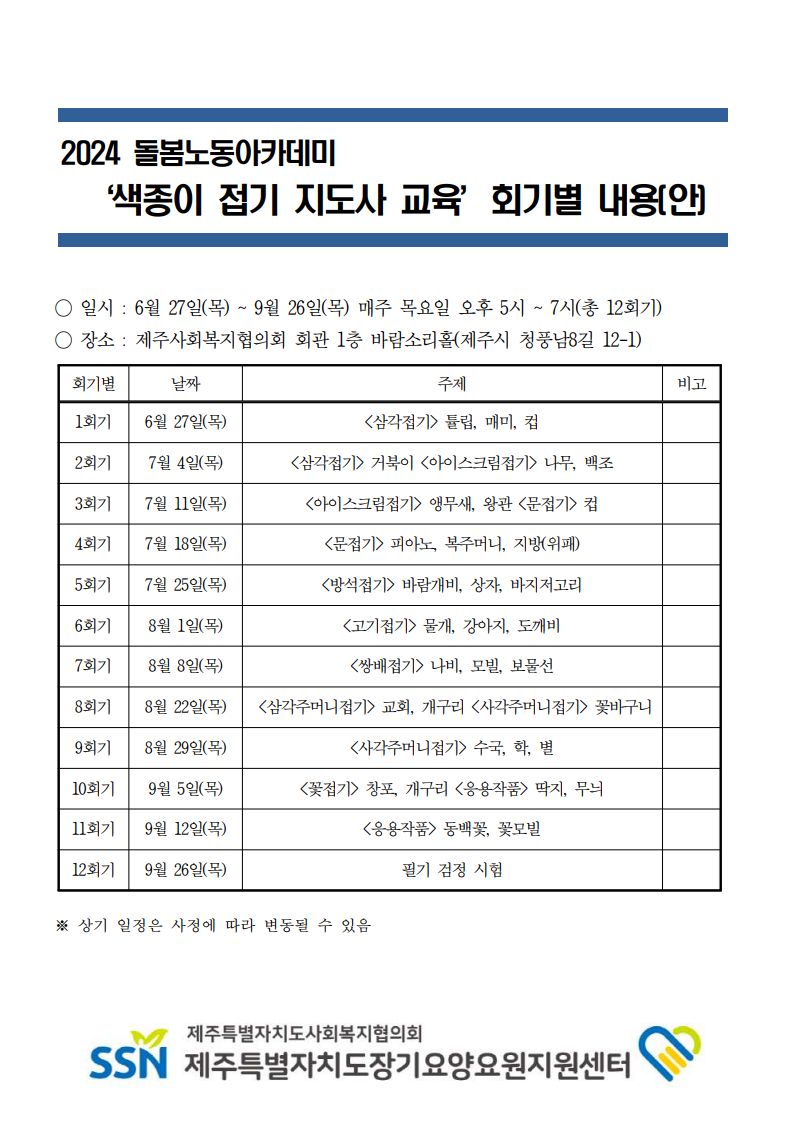[돌봄노동아카데미] 색종이 접기 지도사 교육 과정 신청 안내