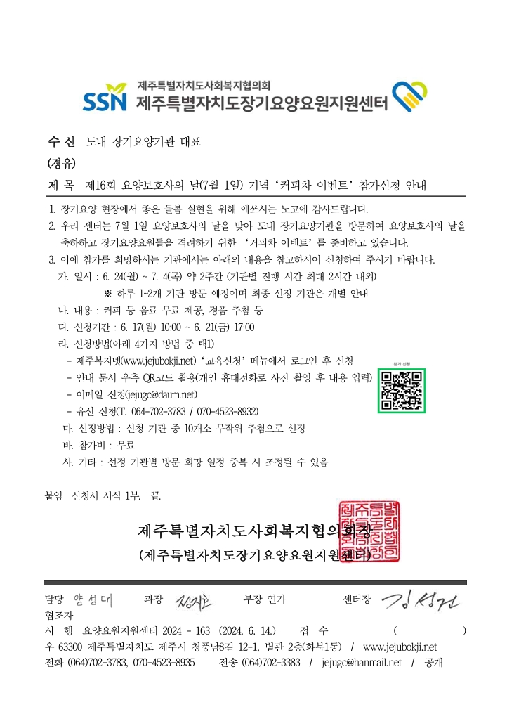 제16회 요양보호사의 날(7월 1일) 기념 '커피차 이벤트' 참가신청 안내