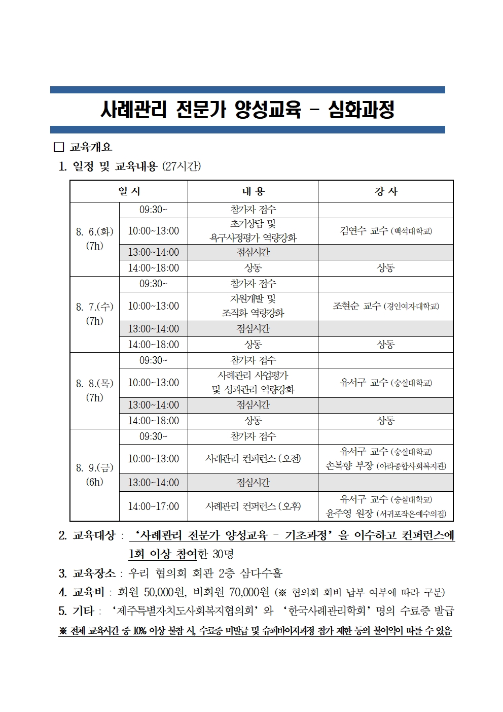 '사례관리 전문가 양성교육 - 심화과정' 신청안내