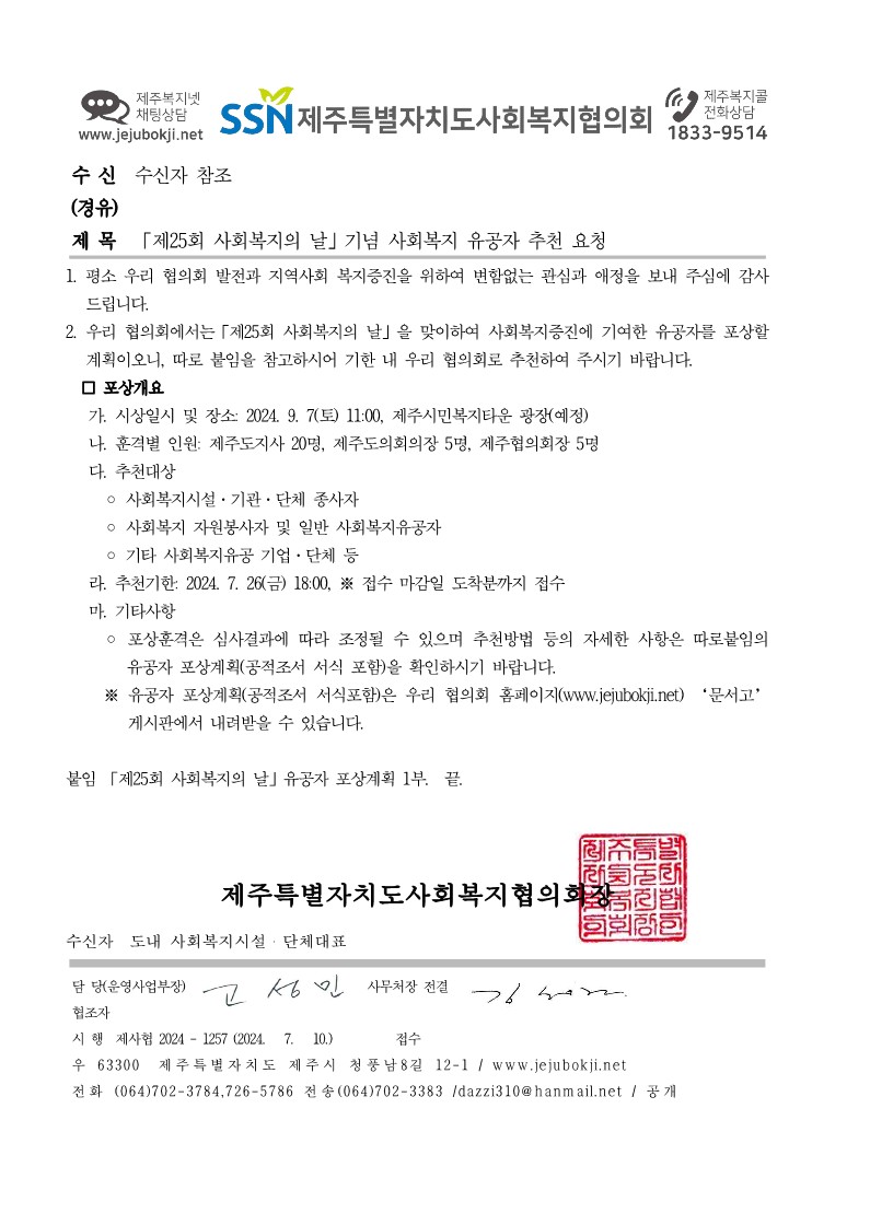 제25회 사회복지의 날 기념 사회복지유공자 추천요청
