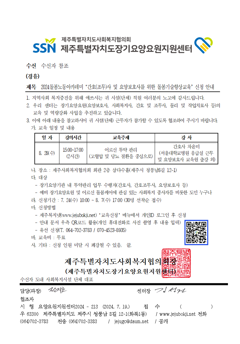 [돌봄노동아카데미] 간호(조무)사 및 요양보호사를 위한 돌봄기술향상교육 신청 안내