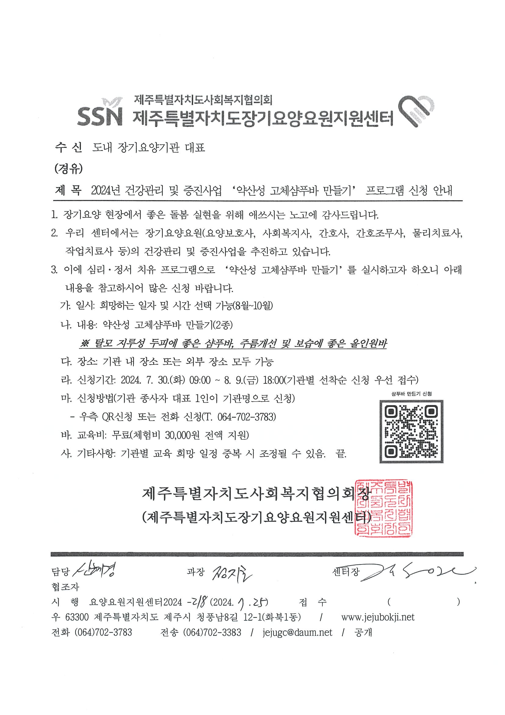 2024건강관리 및 증진사업 '약산성 고체샴푸바 만들기' 프로그램 신청 안내