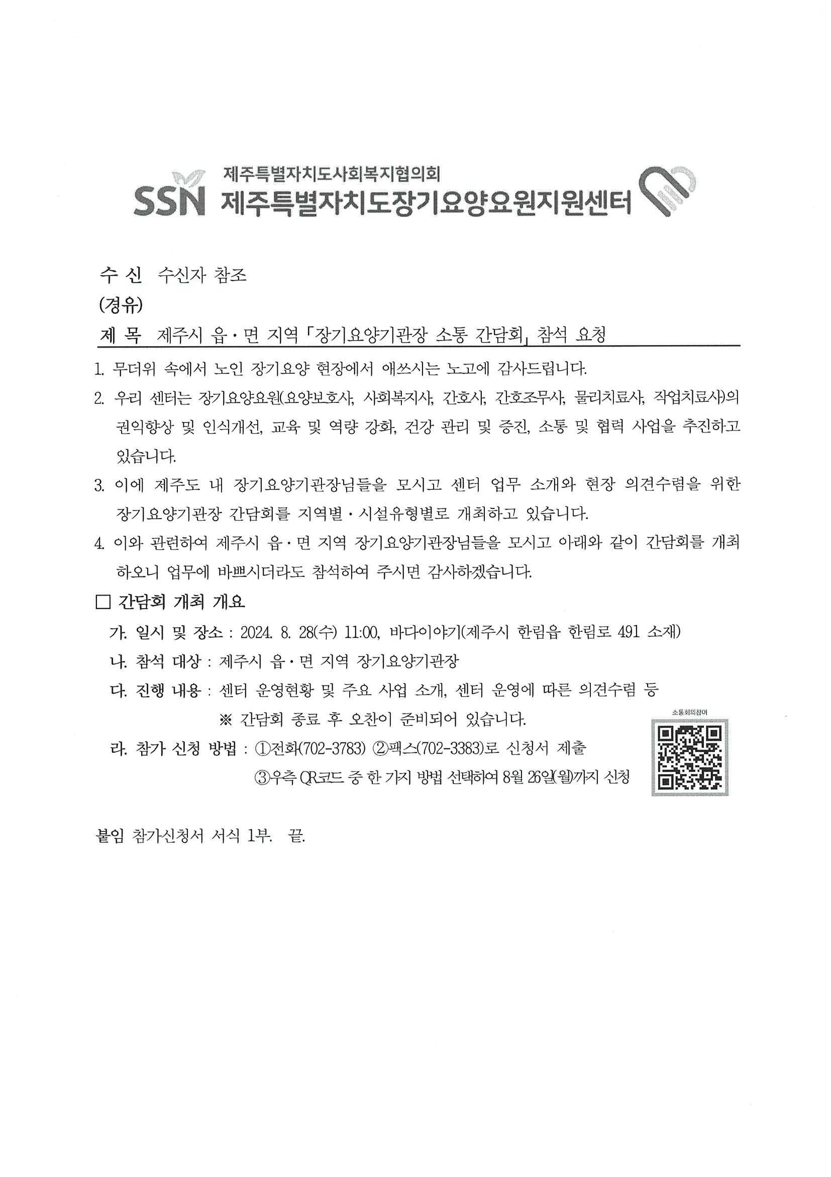 제주시 읍·면 지역 ⸀장기요양기관장 소통 간담회⸥ 참석 요청