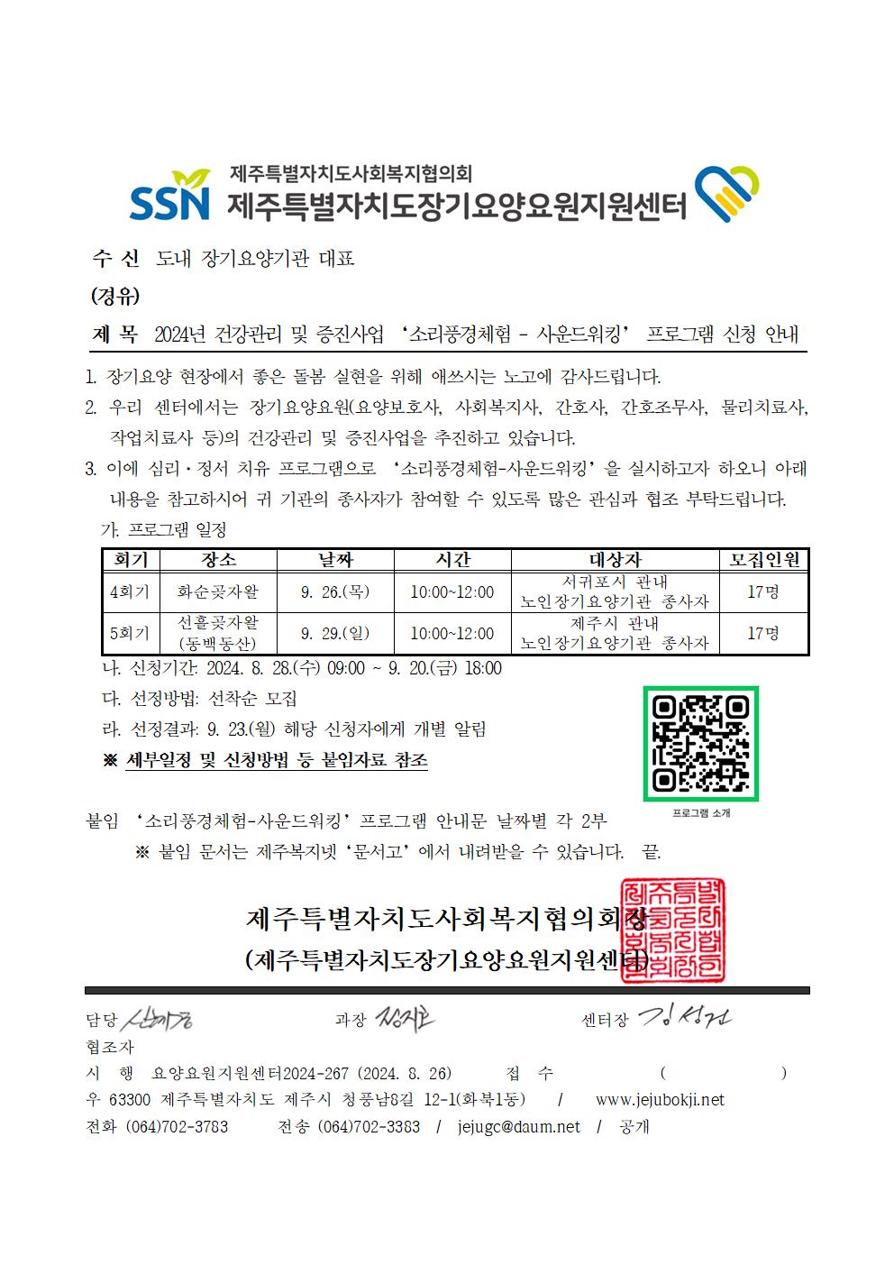 2024년 건강관리 및 증진사업 '소리풍경체험-사운드워킹' 프로그램 신청 안내