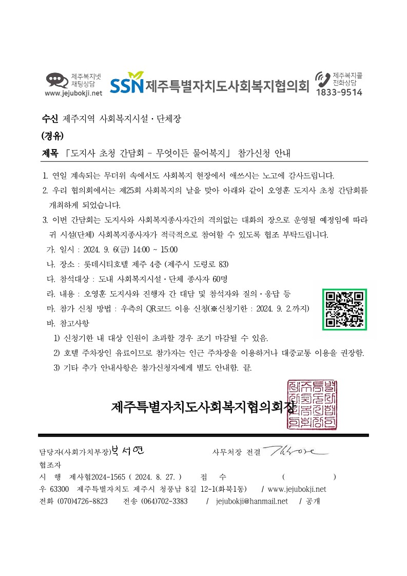 「도지사 초청 간담회 – 무엇이든 물어복지」 참가신청 안내